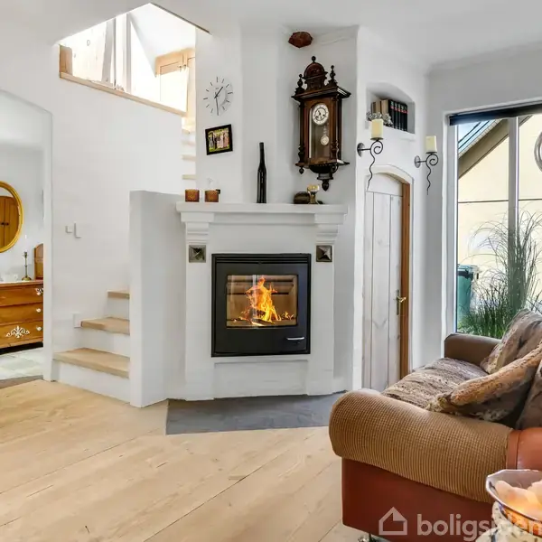 Flot villa med utallige fine detaljer både ude og inde, så hvis du elsker kvalitet, træ, natursten og atmosfære - så læs videre!Entré med flot klinkegulv, skjult styring af el og varme og adgang til bryggers med vask og plads til vaskemaskine. tørretumbler og fryser. Desuden også kosteskab og indbyggede hylder. Nyere lyst badeværelse med bruseniche og HTH egetræs bademøbler og spots i loftet. Køkken/alrum med rustikt udtryk, vandskurede vægge og bredde, massive Douglas gulvplanker der har fået d