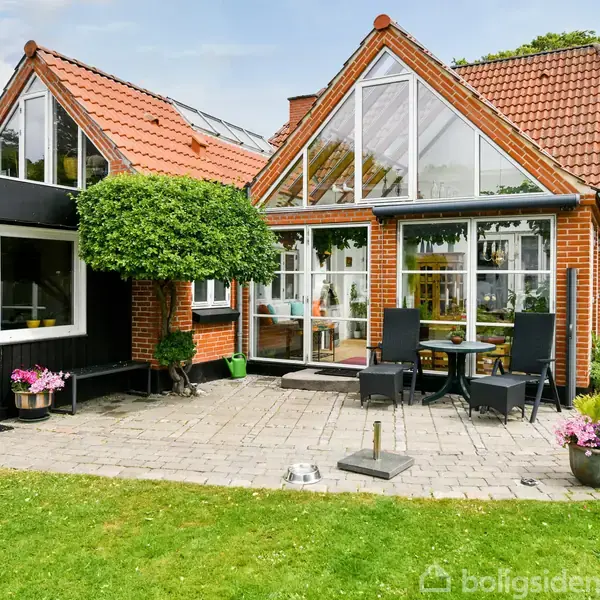 Unik ejendom med sydlandsk charme, eventyrlig have og værksted.