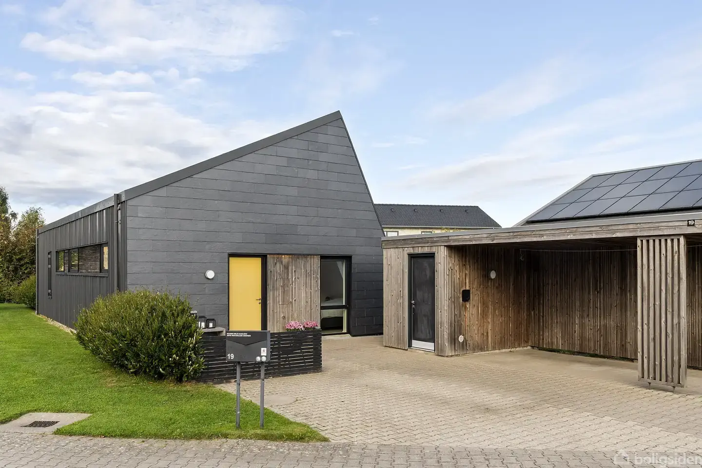 Æstetisk, prisvindende arkitektur, vedligeholdelsesfrie materialer og lavenergiløsninger er bare nogle af de højdepunkter, som dette rækkehus fra 2014 tilbyder. Den arkitekttegnede bolig lader jer nyde solen på to hyggelige terrasser, mens arealerne omkring passes af grundejerforeningen. Et andet plus er den gode beliggenhed med kort afstand til midtbyen. Velkommen til Teglparken. "Simple Living" var et af nøgleordene bag arkitekturen, hvilket kommer til udtryk gennem den stilrene facade og bol