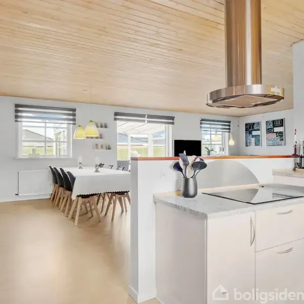 Åbent hus med tilmeldingskrav 2/2 - klik på billede - Dette dejlige træhus i 1 plan, beliggende i det naturskønne Als, er en unik mulighed for dig, der ønsker at bo i rolige omgivelser med en kort afstand til en betagende udsigt over Kattegat. Med sin klassiske røde facade og velholdte have fremstår huset indbydende og idyllisk. Indretningen byder på en lys og rummelig stue, der naturligt forbinder sig med både køkkenet og husets skønne udestue. Herfra har du direkte adgang til en stor terrasse, hvor du kan nyde din morgenkaffe, mens du beundrer solopgangens farver på himlen. Boligen rummer tre værelser, hvilket gør den ideel for både par og familier. Badeværelset er udstyret med brus og god opbevaringsplads, og det praktiske bryggers giver ekstra funktionalitet i hverdagen. Haven tilbyder flere skønne terrasser og drivhus samt velplejet græsplæne. Dertil en stor garage med tilhørende værksted, der tilbyder masser af plads til både opbevaring, bilen og hobbyprojekter. Med en kort gåtur når du kysten, hvor du kan opleve de fantastiske naturscenerier og den friske havluft. Gør denne skønne ejendom til dit nye hjem, og oplev hver dag den ro og skønhed, som denne beliggenhed kan tilbyde. Als er en lille og hyggelig landsby ved Kattegats kyst, der trods sin beskedne størrelse rummer rigtig meget. Vi kan fremhæve god skole (0-9 klassetrin), fine pasningsmuligheder, et sundt foreningsliv, flot multibane, fine indkøbsmuligheder og billig fjernvarme. Ligeledes er den skønne natur også værd at nævne. Fra byen er der ikke mere end godt 10 min til Hadsund by, en dejlig handelsby med masser af mulighed for indkøb af enhver slags og masser af aktiviteter for alle. Derudover er der heller ikke andet end ca. 5 km til Øster Hurup som er en skøn by med Kattegats bedste og mest børnevenlige sandstrand.