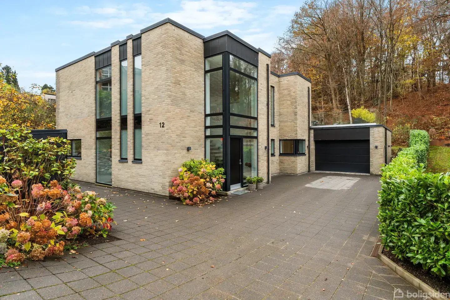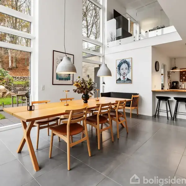 Her får du en moderne og arkitekttegnet villa fra 2015, hvor eksklusive materialer, rene linjer og et gennemtænkt design skaber et harmonisk helhedsindtryk. Her er der skabt et hjem, hvor både funktionalitet, æstetik og naturnærhed spiller smukt sammen. Allerede i den indbydende hall mærker du, at her er tale om en bolig i særklasse. Den flotte loftshøjde og de store vinduespartier lader lyset strømme ind og giver en naturlig kontakt til de grønne omgivelser – skoven træder næsten med indenfor