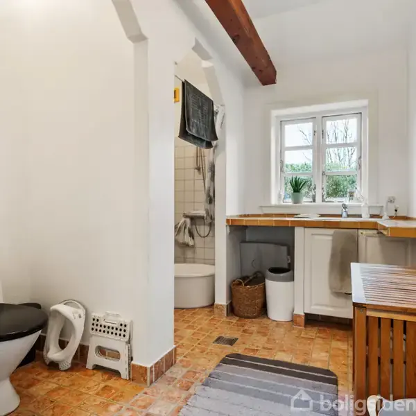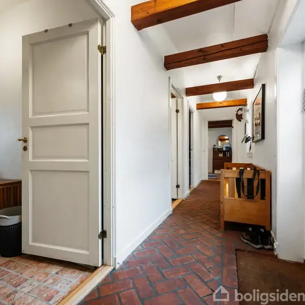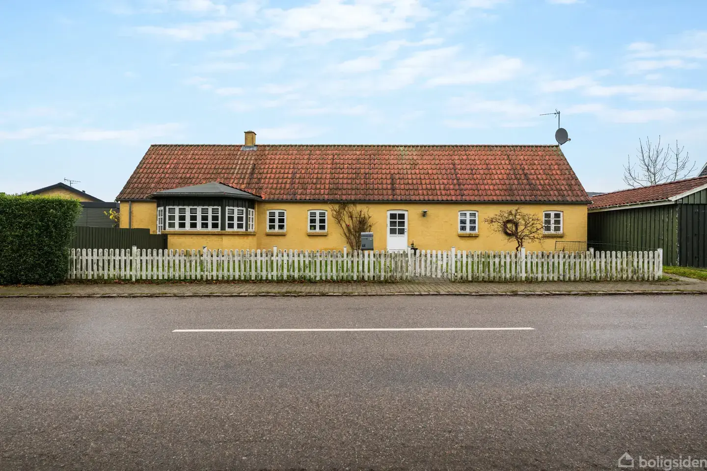 Villaen på Terslev Bygade 44 fremstår som en hyggelig bolig med en dejlig atmosfære, hvor synlige træbjælker, karnap i spisestuen og den lange byhuslignende facade mod vejen giver et særligt udtryk. Planløsningen fordeler sig på et plan med tre soveværelser, hvortil der er hems over to af dem. Boligen er opført i 2001 og kombinerer en gennemført landlig stil med en mere moderne indretning, velegnet til en familie, der ønsker god plads og mulighed for at indrette sig efter egne behov.Man ankommer
