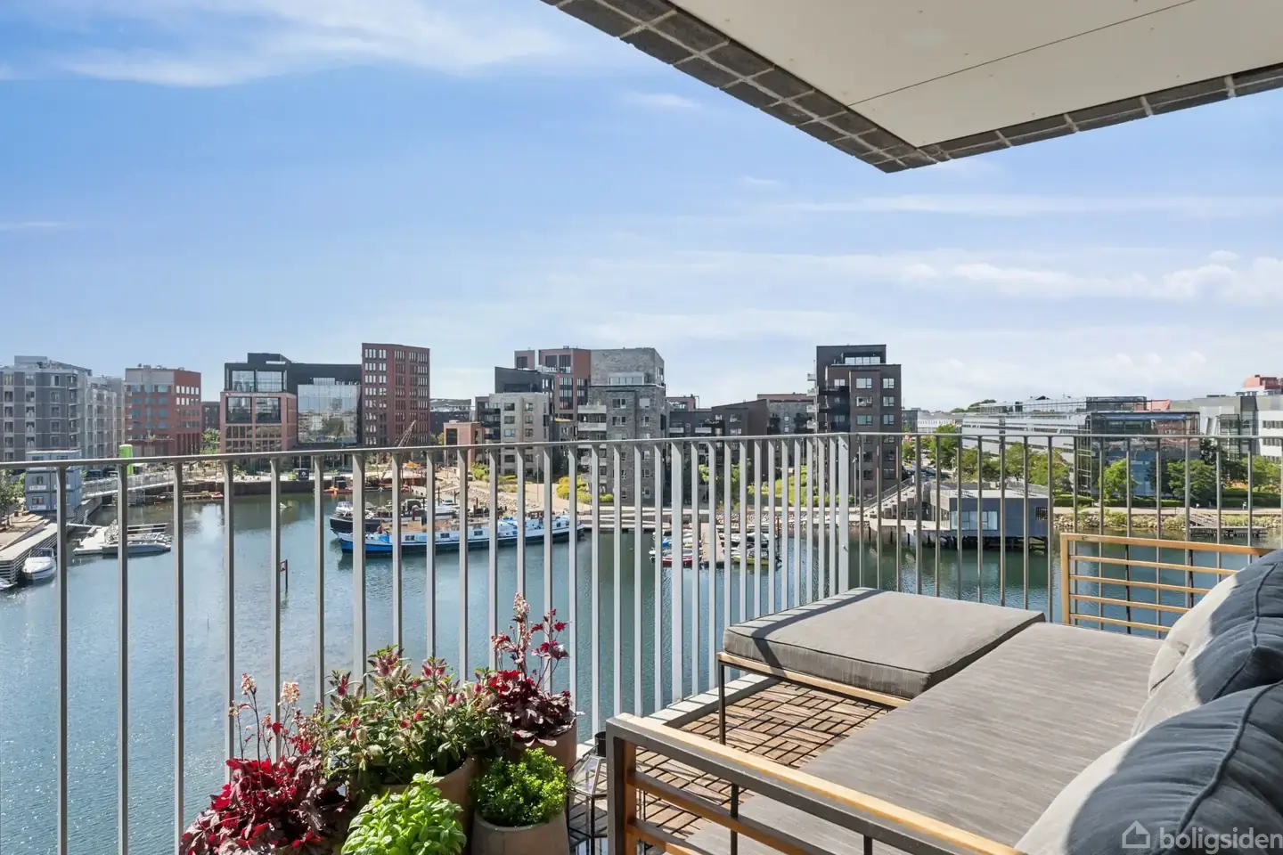 Fremragende lejlighed med altan og udsigt til vandVandet snor sig i kanalen og havnen for foden af den imponerende ejendom, der rummer jeres næste hjem. Den suveræne lejlighed er trods sin unge alder hædret med et udsøgt, snedkereret køkken i 2023, og den har derfor endnu mere at byde på foruden det maleriske dagslys, den dragende udsigt og den solbeskinnede altan. I får hjemme på Sluseholmen med badezone lige ved døren, trygheden i højsædet og Indre By inden for rækkevidde. Velkommen.Køkkenøen