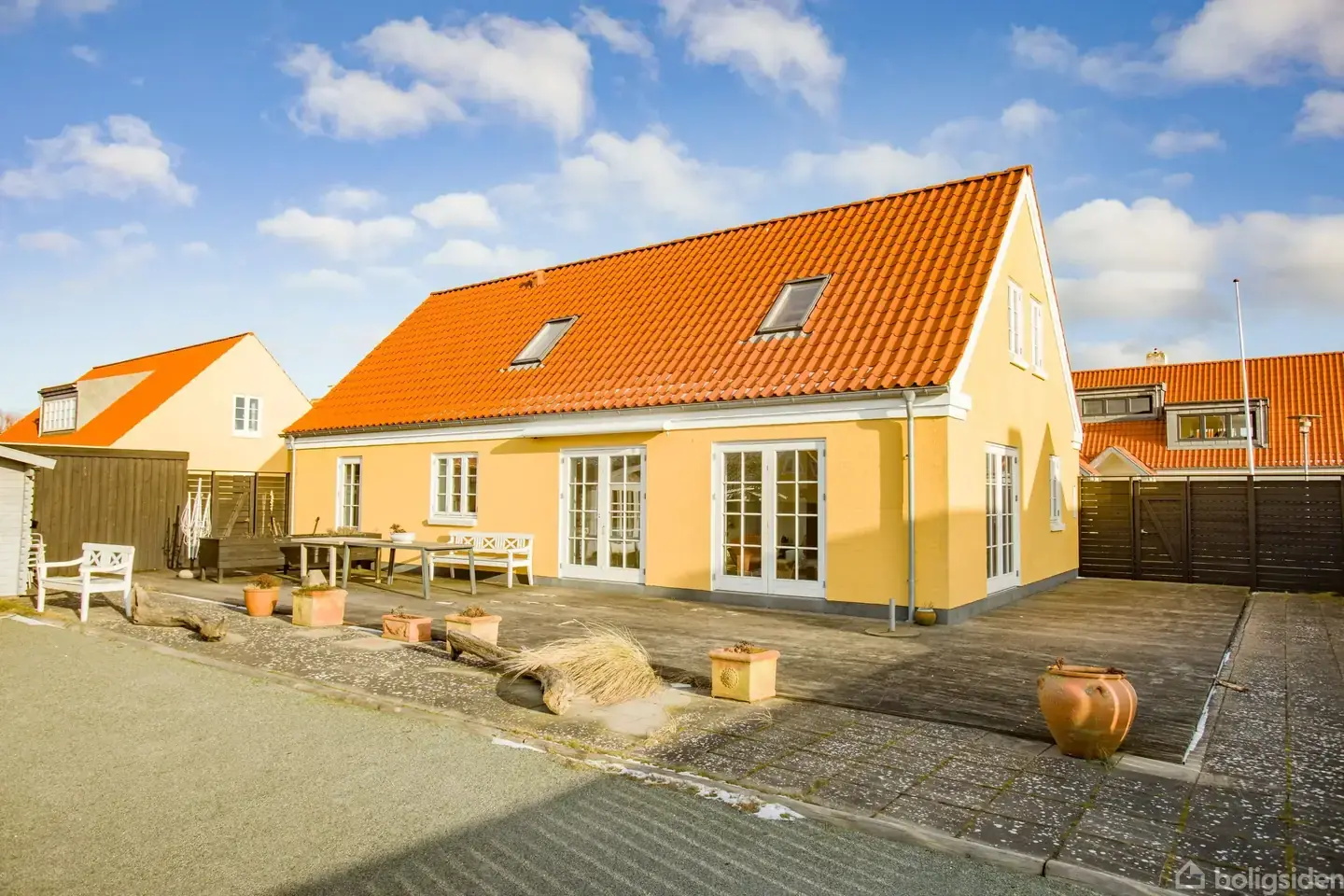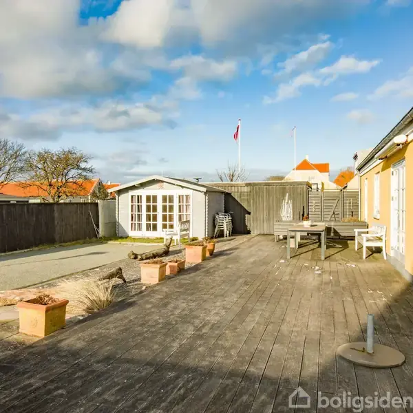 På en lille, rolig blind vej i det attraktive Østerby finder du denne smukke, grundmurede Skagensvilla fra 2015. Ejendommen fremstår yderst velholdt og byder på 122 m² bolig samt en uudnyttet førstesal, som allerede er klargjort til beboelse og forberedt til badeværelse. Hertil kommer 27 m² garage med integreret udhus samt en charmerende gæstebjælkehytte – alt sammen beliggende på en 564 m² stor grund. Her får du en helt lukket og fuldstændig ugeneret gårdhave (med minimal vedligehold) stor terrasse, vestvendt markise og egen petanquebane – perfekte rammer for afslapning og hyggelige stunder, hvor solen kan nydes hele dagen. Samtidig er der gode parkeringsforhold på grunden. Beliggenheden er i særklasse med blot ca. 380 meters gang til Vippefyret og godt 500 meter til den skønne Sønderstrand – midt i Skagens særlige stemning og natur. Indretning: Villaen byder velkommen i en pæn og præsentabel entré. Herfra er der adgang til praktisk bryggers med vask, vaskesøjle, skabe og al teknik. Soveværelset har flotte trægulve, skydedørsskabe og direkte adgang til et stilfuldt badeværelse med væghængt toilet, bruseniche og hvidt arrangement med formstøbt vask. Den lyse og indbydende stue har et skønt lysindfald og udgang til den lukkede gårdhave via to dobbelte terrassedøre. I forlængelse heraf ligger spisepladsen også med udgang via dobbelt terrrassedør til vestvendt gårdhave og åben forbindelse til det pæne køkken. Boligen rummer desuden en gang med indbygget vinkøleskab, to værelser med skabe – hvoraf det ene har udgang til gårdhaven – samt et gæstebadeværelse med bruseniche og hvidt arrangement. Der er klinkegulve i stue, køkken og alle vådrum samt trægulve i samtlige værelser. Gulvvarme og genvex-anlæg i alle rum sikrer et behageligt indeklima året rundt. Ejendommen er grundmuret, opført med rødt tegltag og zinktagrender. Garagen er udstyret med elport, støbt gulv og udhus i bunden. Der foreligger desuden tegninger til udvidelse af førstesalen – en oplagt mulighed for at skabe endnu mere plads. En sjælden udbudt Skagensvilla, der kombinerer moderne komfort, klassisk arkitektur og en attraktiv beliggenhed – perfekt som helårsbolig såvel som eksklusivt fritidshus.