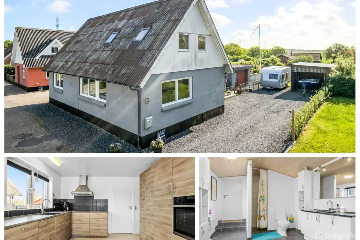 Åbent hus med tilmeldingskrav 3/2 - klik på billede - Charmerende og rummelig villa, tæt på hav og natur Drømmer du om en rummelig bolig med masser af plads, moderne komfort og en naturskøn beliggenhed? Så er denne skønne ejendom på Thistedvej 450 i Vester Thorup måske noget for dig! Huset er i to plan og byder på en veldisponeret stueetage med en rummelig entré, hvor der er god skabsplads og trappeopgang til førstesalen. Herfra træder du ind i det store køkken/alrum, der er hjemmets hjerte. Køkkenet er fra 2016 og fremstår moderne og stilfuldt med en stor køkkenø, der giver masser af bord- og opbevaringsplads. Derudover rummer stueetagen et stort badeværelse med en rummelig bruseniche samt et stort værelse, der i øjeblikket anvendes som træningsrum. På førstesalen finder du to store gavlværelser. Det ene værelse har tidligere været opdelt i to, hvilket nemt kan genetableres, hvis behovet opstår – perfekt til børnefamilien eller hjemmekontor. Udendørs er der masser af plads til både hobbyer og afslapning. Ejendommen har både garage, carport og et godt udhus, der giver rig mulighed for opbevaring eller værksted. Flere gode terrasser indbyder til hyggelige stunder under åben himmel, og på én af dem finder du et lækkert vildmarksbad, hvor du kan nyde de rolige omgivelser. Vester Thorup er en hyggelig landsby med købmand og tankstation, så dagligdagens fornødenheder er lige ved hånden. Her bor du samtidig tæt på smuk natur – kun 2 km fra plantagen og 4 km fra Vesterhavet og Thorupstrand, hvor du kan opleve det autentiske kystfiskermiljø, nyde en middag på den lokale fiskerestaurant eller tage en is i kiosken. For børnefamilien er der kun 2,5 km til skolen i Klim, hvilket gør hverdagen nem og bekvem. Denne bolig kombinerer moderne komfort med en idyllisk beliggenhed tæt på havet og skoven – en oplagt mulighed for dig, der ønsker et hjem med både plads og sjæl. Kontakt os for en fremvisning – vi glæder os til at vise dig rundt!