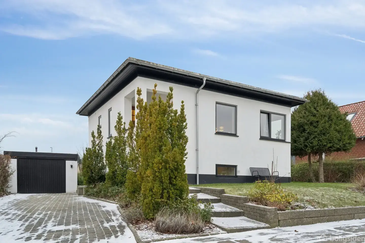 Denne villa i Højbjerg blev bygget i 1935, og der er tydeligvis sket en del siden da. Boligen fremtræder nemlig flot og tidssvarende, og opdateringerne er samtidig helt i tråd med husets oprindelige udtryk. Villaen har bl.a. gennemgået en omfattende renovering i 2021 med bl.a. nye vinduer, nyt køkken, nyt badeværelse og toilet, nye lofter med isolering i bungalowdelen, nye gulve, nyt el (undtagen kælder) samt facaderenovering. Hjemmet byder på en spændende indretning i forskudte niveauer, og pla
