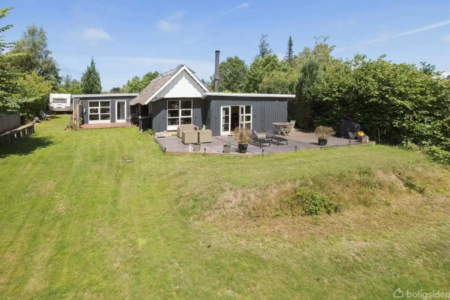 Rummeligt fritidshus på stor sydvendt grund omkranset af høje træer