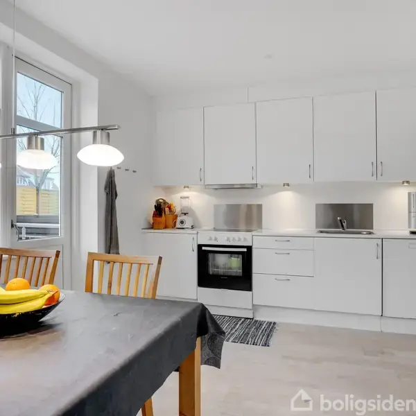Område: Boligen er beliggende i centrum af Vejgaard på en rolig villavej tæt ved grønne områder, indkøbs muligheder, skole og daginstitutioner. Vejgaard Centrum er kendt for sit eget hyggelige og nære bymiljø med mange butikker, spisesteder og kulturhuse. Alt dette er kun få minutter væk fra boligens beliggenhed. Udover det skønne byliv har du også mulighed for at nyde den grønne og rolige natur ved blandt andet Sohngårdsholmparken, der kun ligger knap 1 kilometer fra boligen. Ejendommen: Boligen er opført i 1930 i røde mursten og med hvide vinduer. Ejendommen indeholder to lejligheder med egen indgang og terrasse, så du kan sidde udenfor ugeneret. Foran huset kan man frit parkere. Det er begrænset, hvad der er af have, så dette er nemt at overkomme. På terrassen er der arrangeret et lille bed, hvor du eventuelt kan have din egen lille køkkenhave. Herude er der også et skur med plads til opbevaring samt et halvtag med plads til cykelparkering. Indretning: I stueplan er der et stort lyst køkken med spiseplads og udgang til terrassen. I stueplan findes stuen, der har et stort vinduesparti, som giver et rigtig flot lysindfald. I entréen er der adgang til toilet. Fra stueplan kommer du videre op på 1. salen, hvor boligens store, lyse badeværelse findes. Her er der plads til både vaskemaskine og tørretumbler. Der er også et stort soveværelse, hvor der er et stort indbygget skab med mange spejle, hvor der også er plads til masser af opbevaring. På 2. sal er der to gode disp. rum, som sagtens kan fungere som kontor/hobbyrum. Denne etage er ikke godkendt til beboelse. Kælderen er renoveret og veludnyttet med gulvvarme i alle rum. Udover dette er der også et køkken, badeværelse og to store disponible rum.
