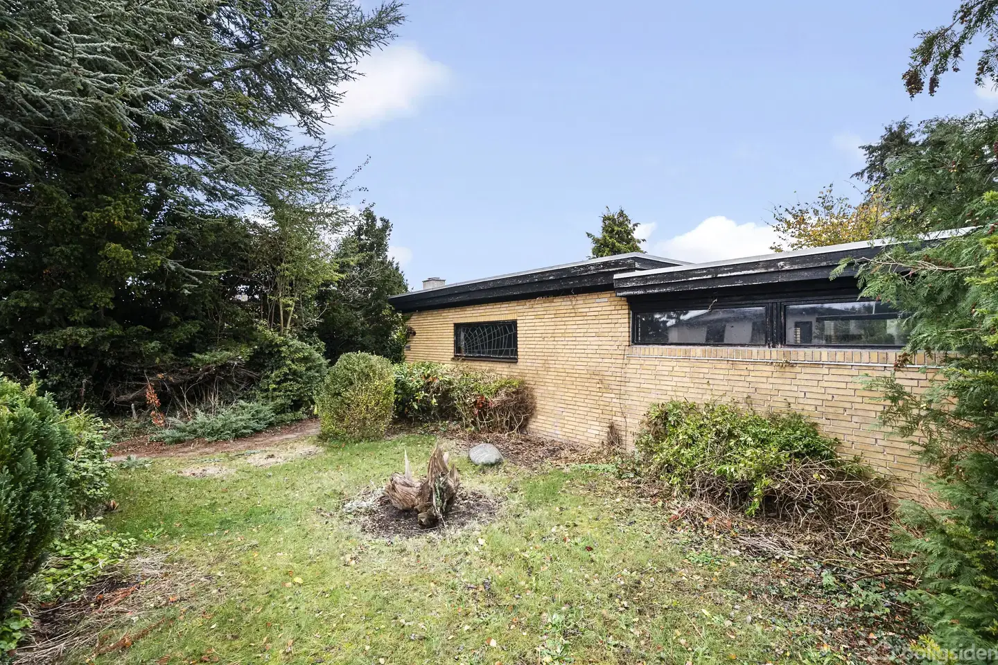 På en rolig beliggenhed finder du denne spændende etplansvilla, opført i 1963 og med tilbygning fra 1969. Huset er opført i gule sten med built-up tag og fremstår i sin oprindelige stil – et oplagt valg for dig, der drømmer om at skabe dit eget hjem med moderne komfort og personlig indretning.Indenfor byder boligen på et klassisk elementkøkken, en stor vinkelstue med hyggelig nedsænket pejsestue samt udgang til en dejlig atriumgård, hvor privatlivet kan nydes i fulde drag. Herudover rummer bolig