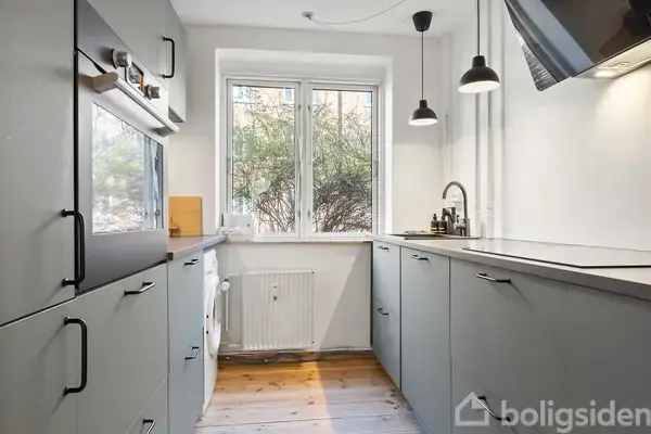 Hyggelig og høj stuelejlighed i rolige omgivelser midt i Odense Denne lyse og højtliggende stuelejlighed ligger tilbagetrukket fra vejen, hvilket skaber en behagelig og tryg atmosfære. Der er gode parkeringsmuligheder enten på Thuresensgade eller på en af de nærliggende veje. Beliggenhed Lejligheden er centralt placeret i hjertet af Odense med nem adgang til dagligvarebutikker, grønne områder og uddannelsesinstitutioner. Den kommende letbane får stoppested lige i nærheden, og du har alle byens