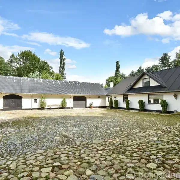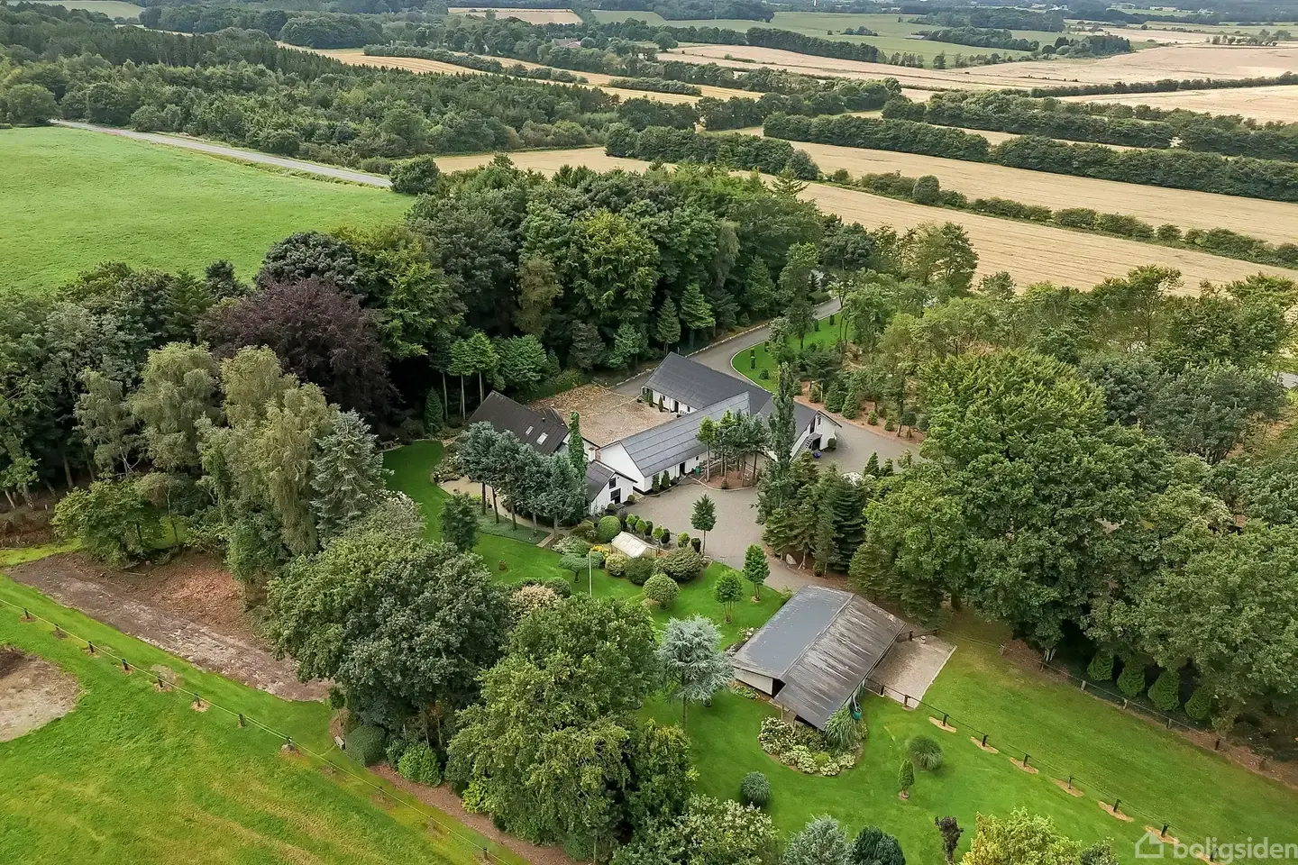 Velkommen til en meget flot, velholdt og indflytningsklar landejendom beliggende i udkanten af Thyregod by. Denne charmerende ejendom byder på et rummeligt stuehus, der løbende er moderniseret. Stuehuset er indrettet med kontor med brændeovn, baggang, entre, værelse, badeværelse med både bruseniche og badekar, køkken med viktualierum, alrum med udgang til den skønne have, dagligstue samt spisestue i åben forbindelse samt forgang. I tagetagen finder du en repos, et værelse, et toilet og et stort soveværelse, hvorfra der er udgang til altan. En bolig, der rummer den store familie. Udhusene er velindrettede og meget velholdte. Her er lade, værksted og en hestestald med tre murede hestebokse. Derudover er her en flot gildesal, perfekt til store sammenkomster. I forbindelse med folden er der desuden en løsdriftstald, som sikrer gode forhold for dyrehold.Jorden til ejendommen er delvis bortforpagtet for et år ad gangen, hvilket giver fleksibilitet og mulighed for indtægt. De naturskønne omgivelser omfatter marker, folde, søer, skov og beplantning i kuperet terræn. Det skaber en idyllisk ramme omkring ejendommen. Her kan man nyde den friske luft og de åbne vidder, samtidig med at man bor i gåafstand til både skole, by og tog. Energimæssigt er ejendommen særdeles god, idet ejendommen opvarmes med jordvarme, og der er stadigt et solcelleanlæg til produktion af strøm. Det bidrager til en bæredygtig og økonomisk drift.Ejendommen ligger i forbindelse med Thyregod by. Byen tilbyder mange faciliteter for både børn og voksne. Her er skole til og med 9. klasse, børnehave, idrætsfaciliteter herunder idrætshal, svømmehal og badeland, dagligvareforretning og togstation, hvilket gør byen ideel for børnefamilier. Fra ejendommen er der kun få kilometer til motorvejen, hvilket gør det nemt at pendle til nærliggende større byer. Denne ejendom er et ideelt valg for dem, der ønsker at kombinere landlig ro med moderne bekvemmeligheder i smukke omgivelser og en bynær beliggenhed til Thyregod. Her får man det bedste af begge verdener – fred og ro i naturskønne omgivelser samt nem adgang til alle hverdagens nødvendigheder.Ejendommen sælges med et areal på ca. 13 ha. (Der er p.t. ved at blive solgt et lille areal fra - forhør nærmere herom).