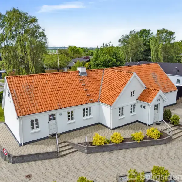 Denne charmerende villa midt inde i Vestbjerg har sin oprindelse som stuehus til en 4-længet bondegård, hvor der omkring gårdspladsen i dag er indrettet rækkehusboliger i de tidligere stalde. Stuehuset er i dag blevet moderniseret til en skøn og indbydende familiebolig med respekt for flot byggestil. Med sin hvidmalede facade, de klassiske hvide sprossede vinduer og det flotte røde tegltag, fremstår huset både stilfuldt og tidløst. Beliggenheden ligger ideelt, kun få minutters gang fra den natur