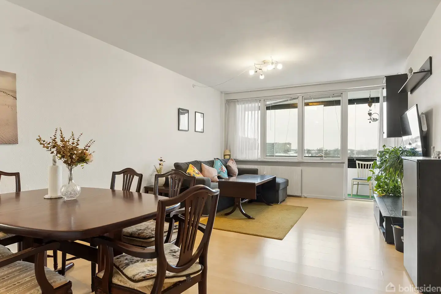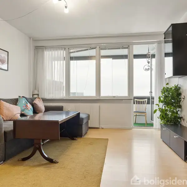 Denne 3V’er i Søborg er til dig, der gerne vil bo tæt på byens mange tilbud, men som også har det rigtig godt med at være hævet op over det, der foregår i gadeplanet. Lejligheden holder til på femte sal i en ejendom, der er den højeste i nabolaget. Resultatet er fri udsigt over det halve kongerige, som ikke er begrænset til udvalgte dele af boligen, men som opleves i køkkenet, i de to værelser, i stuen og ude på altanen.Fraværet af høje bygninger omkring betyder desuden, at du har fuldt privatli