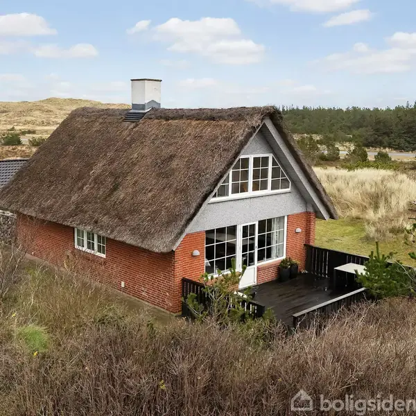 Dette indbydende sommerhus ligger på en imponerende 2.774 m² stor, kuperet grund med enestående privatliv og direkte ud til fredet naturområde mod nord. Beliggenheden er helt særlig med kort gåafstand til Vesterhavet, hvor naturen er i konstant forandring. Huset, som oprindeligt er opført i 1965 og senere moderniseret, rummer 95 m² bolig og suppleres af et 24 m² fuldt isoleret udhus, der kan anvendes til flere formål. Ejendommen præsenterer sig som solid med murede facader, stråtag og vinduer, der er lette at vedligeholde. Indretningen er lys og funktionel med et moderne køkken, der er integreret med opholdsafdelingen. Stuen har et behageligt lysindfald og fungerer som det naturlige samlingspunkt med brændeovn, varmepumpe og udgang til en stor, afskærmet og sydvendt træterrasse, hvor udelivet kan nydes i læ. Boligen indeholder tre rummelige soveværelser - ét placeret i stueplan og to på førstesalen. Fra de to værelser på øverste plan er der et godt udsyn fra vinduerne til klitterne og de fredede områder mod nord. Badeværelset er pænt og rummeligt med gulvvarme og bruseniche. Til ejendommen hører desuden et isoleret udhus samt et stort overdækket område, som giver gode rammer for ophold udendørs, selv når vestenvinden tager fat. Årgab er et særdeles attraktivt område, beliggende på den smalle landtange mellem fjord og hav. Herfra er der kort afstand til Hvide Sande med levende havnemiljø, specialbutikker og fritidsaktiviteter, ligesom området byder på gode cykelstier mod både Nymindegab og Søndervig. Et oplagt valg for dig, der søger et velindrettet sommerhus i rolige og naturrige omgivelser med Vestkystens særlige stemning lige uden for døren.