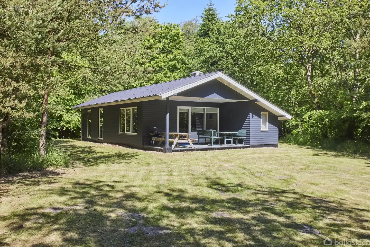 Her har du en helt unik mulighed for at erhverve dig et fristed, som ingen andre kommer i nærheden af.Ejendommen, der i dag har status som sommerhus i landzone, har efter sigende tidligere fungeret som landingsplads for mindre fly. Den aktivitet er dog for længst ophørt, men som et synligt bevis står hangaren her endnu. Bygningen fungerer nu som et stort udhus til alverdens formål – alt efter, hvad du ønsker at benytte det til.Grunden er på næsten 4,5 ha og er beplantet med træer, selvsåede busk