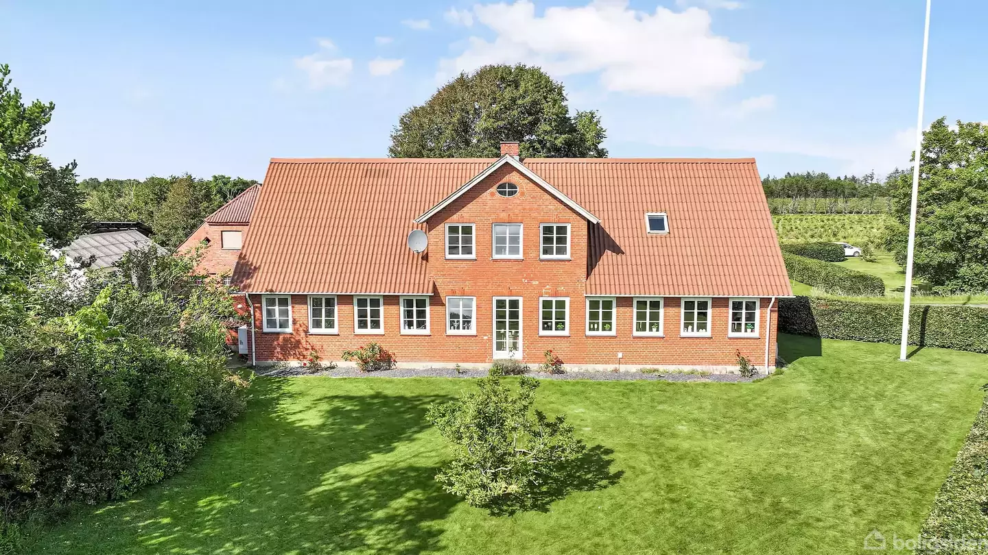 Velholdt og løbende moderniseret landejendom med 3.8 ha og gode solide murede udbygninger + maskinhus. Boligen er 243 kvm. fordelt på 2 plan og har en god indretning med gode store rum som løbende er istandsat. Indretning i boligen:- stor baggang med klinker, god skabsplads og troldtekt loft- stort badeværelse med klinker bruseniche og lyst arrangement- soveværelse med træppe- flot stort køkken med elementer fra 2017, troldtekt loft og spiseplads- værelse/kontor- stor lys stue med tæppe og luft