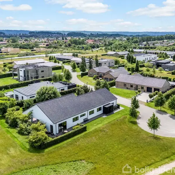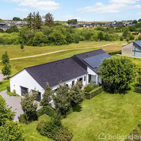 Åbent hus med tilmeldingskrav 3/2 - klik på billede - I det attraktive og nyere villakvarter Tirsbæk Bakker finder du denne skønne etplansvilla fra 2012 med hele 173 m² bolig og en stor dobbelt garage – perfekt til familien, der ønsker både komfort, kvalitet og fredelige omgivelser. Sælger har lagt stor vægt på akustikken i boligen, så både børnene kan lege mens de voksne nyder et glas vin i stuen. Beliggende for enden af en lukket vej, får du her en unik mulighed for at bo i fred og ro, omgivet af grønne områder, legepladser og med kort afstand til både børnehave og skoler, som nås nemt på cykel. Et ideelt sted for børnefamilien. Indretning og planløsning Villaen byder på en moderne og funktionel planløsning med gulvvarme i hele huset og materialer i høj kvalitet: · Stort og lyst køkken-alrum i åben forbindelse med den rummelige stue – her er plads til både hverdag og fest. · Fra køkken-alrummet er der direkte udgang til en sydvendt terrasse, hvor en del er overdækket – perfekt til både solrige og mere kølige dage. · Forældreafdeling med soveværelse, eget badeværelse samt walk-in-closet. · Tre gode værelser, der kan indrettes som børneværelser, kontor eller gæsteværelser, alle samlet omkring et lyst og lækkert badeværelse i fordelingsgangen. · Et praktisk bryggers med god skabsplads og indgang direkte fra garagen – så man kommer tørskoet ind i huset. · Stor dobbelt garage, hvor der både er plads til biler, cykler mv. Kør billerne ud af garagen, så har du en gildesal, hvor fødselsdage mv. kan holdes. Ekstra plads og muligheder Over garagen findes et disponibelt rum på 25 m², som kan anvendes til opbevaring, hobbyrum, fritidsaktiviteter eller kontor – mulighederne er mange. Udendørsarealer Den velanlagte arkitekttegnet have giver rig mulighed for leg, boldspil og hyggelige stunder, og med både en solrig terrasse og en mere skyggefuld terrasse ved stuen, er der altid et godt sted at nyde udelivet – uanset tidspunktet på dagen. Hen over sommeren, blomster haven på forskellige tidspunkter, så du får en skøn oase i den travle hverdag. Et ideelle hjem for familien, der ønsker en nyere villa i naturskønne omgivelser med moderne komfort og god plads til alle behov. Her får I en indflytningsklar bolig i et af Vejle Østs mest eftertragtede områder. Book en fremvisning – og oplev selv, hvor dejligt her er!