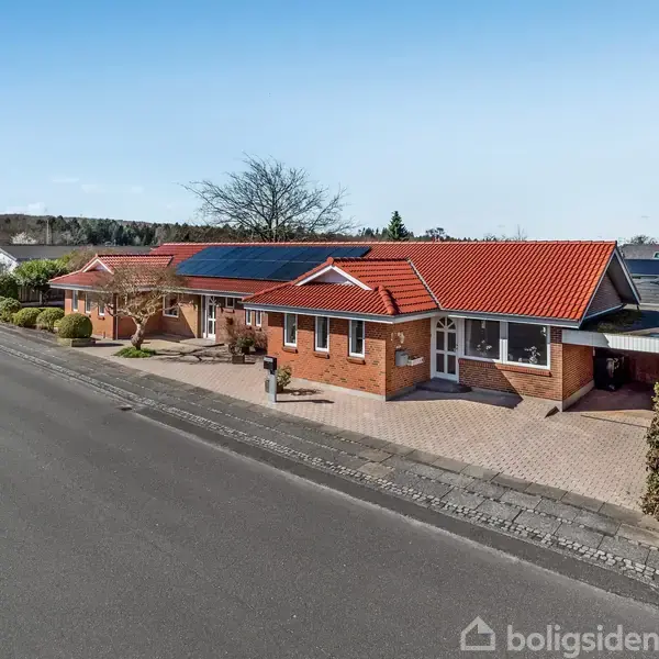 På en rolig og veletableret villavej i attraktive Mejdal finder I denne velholdte etplansvilla på Tjørnevej 2. Her får I en bolig med masser af sjæl, gode opholdsrum og en gennemtænkt planløsning, som henvender sig til både par og familier – og som samtidig giver mulighed for at kombinere bolig og erhverv, idet der kan indrettes liberalt erhverv på op til ca. 60 m² i huset.Ejendommen fremstår solid og velpasset med klassisk murstensfacade og rødt tegltag. Indenfor mødes I af en rummelig entré, d