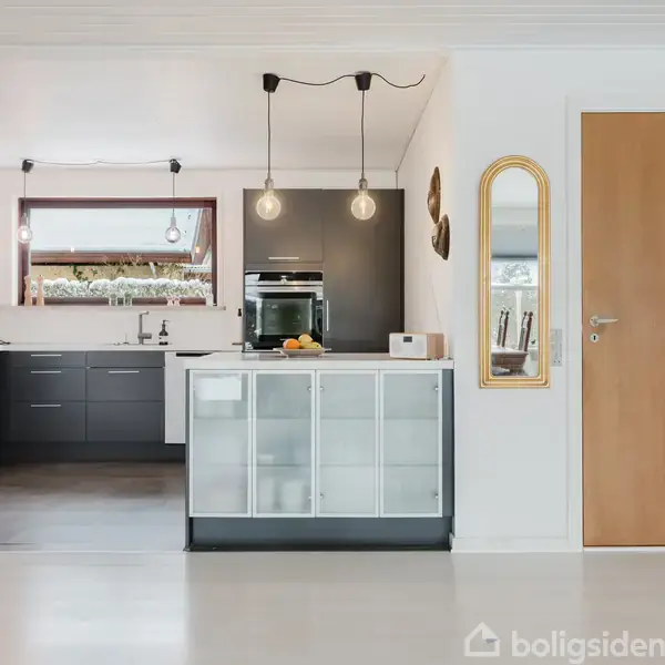 Lys & rummelig villa tæt på alt Når du træder ind ad hoveddøren på Tjørnevej 8, mødes du af et hjem, hvor ro, lys og liv går hånd i hånd. Her får du en veldisponeret 1‑plansvilla med et nylagt tag (2025), tre toiletter og masser af lys fra alle verdenshjørner – perfekt til hverdagen såvel som weekendens samvær.Boligen åbner sig med en inviterende entré, der fører dig ind i husets hjerte: en stor stue med et smukt lysindfald og en naturlig opdeling skabt af en elegant halvmur. I åben forbindelse