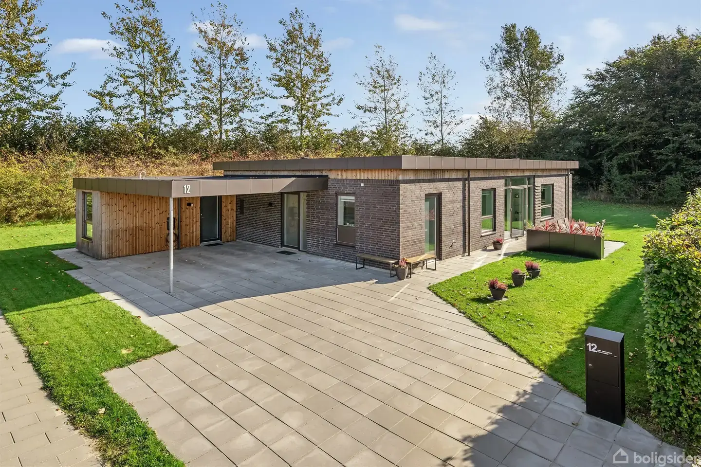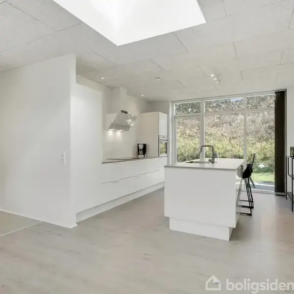 Velkommen til denne kun 2 år gamle moderne og indflytningsklare villa på 150 m², opført i et stilrent funkisdesign med en stor carport på 42 m² med isoleret redskabsrum. Huset fremstår med en gennemtænkt planløsning, hvor alle kvadratmeter er udnyttet optimalt, og hvor materialevalget er af høj kvalitet.Indvendigt mødes man af en lys og indbydende atmosfære med store vinduespartier der sikrer et fantastisk lysindfald. Endvidere er der lysindfaldet optimeret i køkken/alrummet med et stort ovenlys