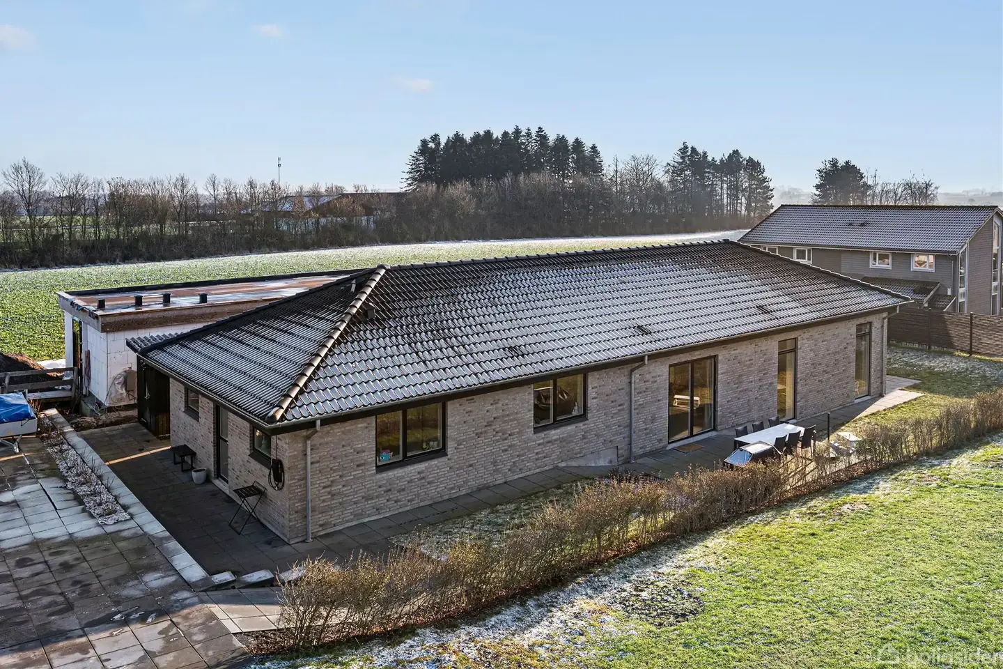 Åbent hus med tilmeldingskrav 4/2 - klik på billede - På Tøpkildevej 54 i Terslev, 4690 Haslev, finder du denne moderne og indflytningsklare villa, der byder på en gennemtænkt planløsning og en stilren arkitektur, hvor komfort og funktionalitet går hånd i hånd. Boligen er opført i 2022 og fremstår overalt lys og velholdt med et samlet boligareal på 175 m², der er optimalt udnyttet til både familieliv og afslapning. Villaen rummer fem rummelige værelser, som nemt kan indrettes til børneværelser, soveværelse, kontor eller gæsteværelse efter behov. Den indbydende stue skaber en naturlig ramme om hyggelige stunder, mens det store, åbne køkkenalrum fungerer som boligens samlingspunkt. Her er der god plads til både hverdagens måltider og større sammenkomster, og de lyse omgivelser giver en behagelig atmosfære, hvor inde- og udeliv let kan smelte sammen. Med to moderne badeværelser er der tænkt på både komfort og bekvemmelighed, og det praktiske bryggers tilfører ekstra funktionalitet i hverdagen med god plads til opbevaring og vaskefaciliteter. Boligen har energimærke A2015, hvilket sikrer en energieffektiv drift, et sundt indeklima og lave forbrugsomkostninger. Her får du kort sagt en tidssvarende og indflytningsklar villa, der er ideel for den moderne familie, som ønsker en ny og velindrettet bolig i rolige omgivelser – et hjem, der danner de perfekte rammer for både nutid og fremtid.