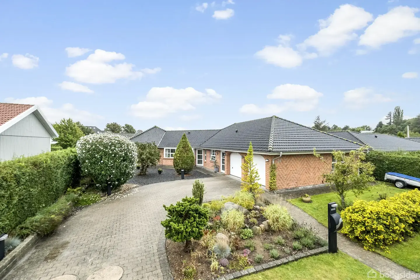Allerede ved ankomsten mærkes det harmoniske udtryk, som villaen fra 2005 på Toftebjerg 34 i Kalundborg byder på. Den flotte murstens facade og det mørke tag skaber et indbydende førstehåndsindtryk, mens den velanlagte indkørsel smukt indrammes af grøn beplantning og sætter scenen for, hvad der venter indenfor. Her opleves en velafstemt helhed, hvor æstetik og funktionalitet går hånd i hånd, og hvor detaljerne er gennemførte, så hjemmet føles både trygt og inspirerende for hele familien.Indenfor