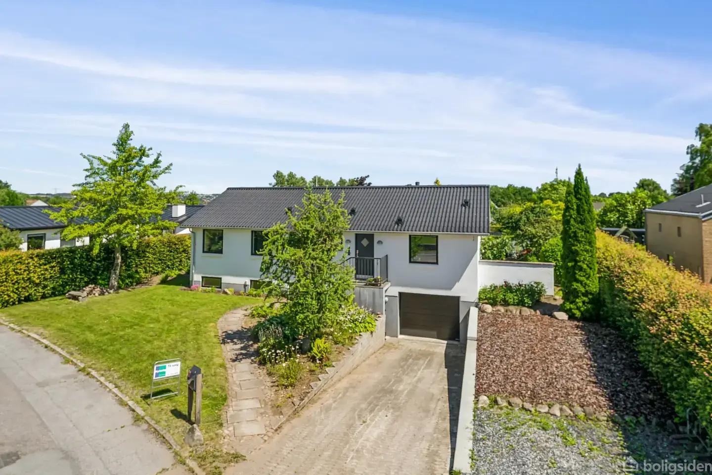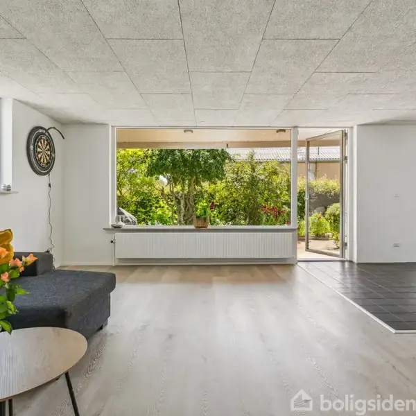 Vi udbyder nu en gennemført bolig, hvor en 70’er-villa danner rammerne, mens det indre er fuldstændig gennemrenoveret og opdateret efter moderne standarder. Indretningen og de gedigne materialer er helt efter bogen, og den nuværende ejer har lagt ekstra kræfter i detaljerne, så I flytter ind i et fuldstændig strømlinet hjem. Ja, her er et hus med mange kvaliteter.' En optimal planløsning fordeler privatliv og samvær over 156 indbydende kvm. I den ene ende af boligen ligger en separat værelsesaf