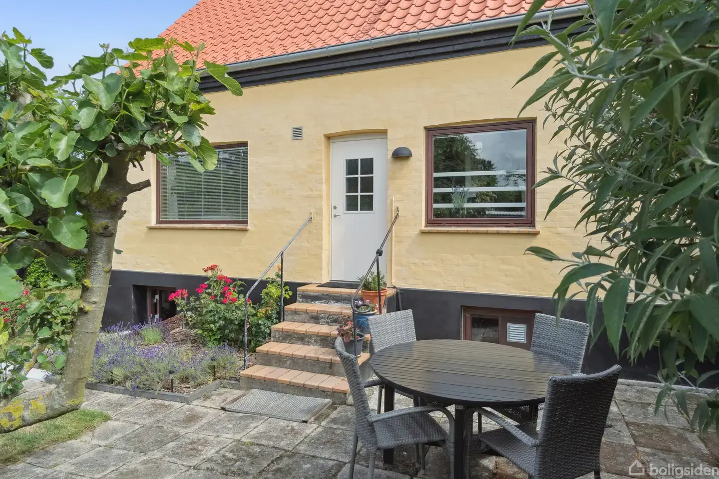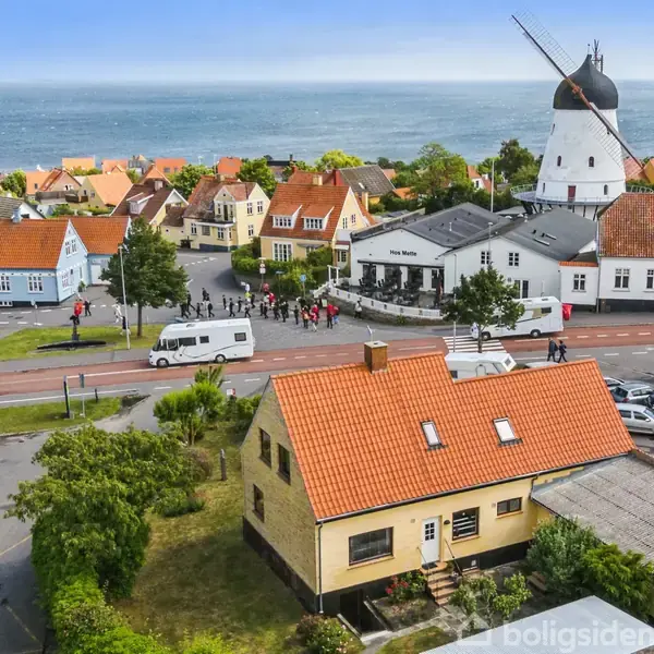 Midt mellem Gudhjem Havn, svømmehallen og Melsted Havn ligger dette store, skønne byhus, som er perfekt placeret i gåafstand til kystens maritime miljøer, lokale spisesteder og indkøb. Ejendommen præsenterer sig pænt med gul facade, rødt tag og sorte detaljer, og indenfor venter masser af plads til både familieliv og gæster. Fra førstesalen har I desuden et flot kig over byens røde tage, farverige facader og det blå hav, der glitrer i baggrunden. I stueplan samles opholdsrummene til den ene sid