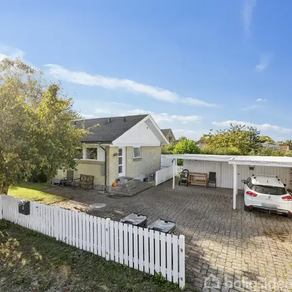 PERFEKT BELIGGENDE VILLA MED FULD KÆLDER Midt i Høngs trygge kulisse finder I en flot opdateret 70’er-villa, der forener rummelighed, funktionalitet og et skønt udeliv. Og den kan netop nu blive jeres! I får ikke blot en solid villa, men også en hverdag tæt på både naturen og hverdagens bekvemmeligheder. Ejendommen præsenterer sig flot fra vejen med hvidt stakit, flisebelagt indkørsel og carport, mens der bag huset åbenbarer sig en have, der imponerer med hele 3.155 m2. Her er der altså plads t