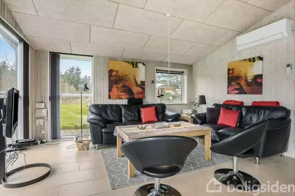 Dette charmerende sommerhus ligger i rolige og naturskønne omgivelser og byder på en stor, lukket og ugenert grund, der giver rig mulighed for udendørs aktiviteter og afslapning. Sommerhuset er blevet totalrenoveret og fremstår moderne og indbydende, samtidig med at det bevarer sin oprindelige charme. Det er ideelt for en ferie med familie eller venner og kan rumme op til 6 personer. Med en bolig på 85 m² og en stor naturgrund på 2532 m², tilbyder huset både komfort og masser af plads. Det blev oprindeligt bygget i 1972, men gennemgik en omfattende renovering i 2016, som har opdateret både indretning og faciliteter. Sommerhuset er kun 650 meter fra havet og ligger tæt på naturen, hvilket gør det til et perfekt udgangspunkt for både afslapning og udendørs eventyr. Til ferieboligen hører et dejligt terrasseareal på 40 m², hvor man kan nyde solen og den smukke natur. Indendørs er sommerhuset lyst og rummeligt. Den hyggelige stue har flotte lyse klinkegulve og en brændeovn, der skaber en varm og indbydende atmosfære. Fra stuen er der udgang til både den sydvendte terrasse, hvor solen kan nydes hele dagen, og en østvendt morgenterrasse, der giver mulighed for at starte dagen med solopgangen. Det åbne køkken er i direkte forbindelse med stuen og har samme flotte klinkegulv. Der er to soveværelser med dobbeltsenge og et værelse med en køjeseng, som giver plads til to personer. Badeværelset er funktionelt og moderne med et stort håndvaskarrangement, bruseniche og væghængt toilet. Huset har desuden et praktisk bryggers med et bordarrangement, hvor vaskemaskinen og tørretumbleren er integreret. Huset opvarmes effektivt med både varmepumpe og brændeovn, hvilket sikrer et behageligt indeklima året rundt.
