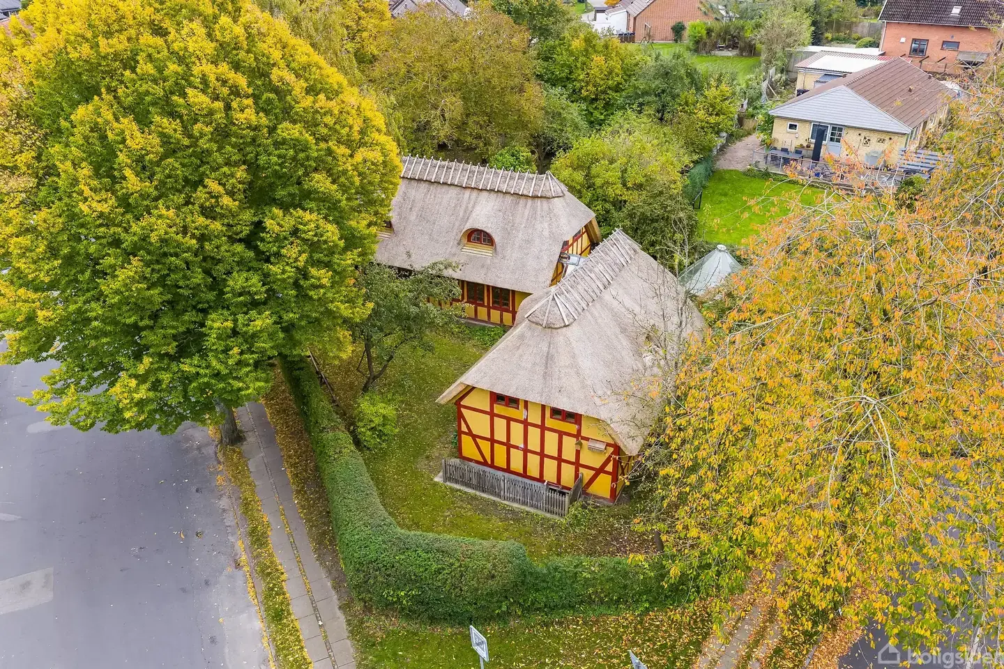 På Toftevej 32, centralt i Odense ligger dette unikke gule bindingsværkshus med stråtag, der er skiftet i 2025. Huset består af to bygninger, der er forbundet af en glasgang, der også fungerer som et orangeri. De to bygninger gør denne ejendom oplagt til to familier, to generationer eller mulighed for udlejning af den ene enhed. Den todelte bolig med kælder, stueplan og 1. sal består af køkken, to stuer, to badeværelser, tre værelser og et soveværelse, samt kontor, bryggers og et disponibelt rum. Her får du et fantastisk hus i landlig stil under 3 km fra hhv. gågaden og Rosengårdcenteret, 700 meter til nærmeste letbanestop og tæt på både handlemuligheder, skoler, børneinstitutioner og motorvejsnettet.Ved ankomst til huset bemærker du straks dets charme og de smukke gamle træer, der omkranser grunden og skaber en følelse af at være i naturen og have ro omkring sig.Fra entréen træder du ind i køkkenet, der ligger i åben forbindelse til den første stue. Køkkenet og stuen fremstår varm og har en dejlig indbydende atmosfære, hvor træet som materiale får lov til at være fremtrædende både i loftet og loftbjælkerne, køkkenfronter, samt på det smukke plankegulv i eg. Den åbne indretning giver rum for samtale og nærvær.Badeværelset, der ligger i forlængelse af køkkenet og husets anden entré, har alt det, du skal bruge i din hverdag. Planløsningen er god, og potentialet er stort.Værelserne på første sal har begge en god størrelse og ligger i forlængelse af hinanden. De skrå vægge har bløde former, og de fritlagte hanebåndsspær skaber en indbydende og hjemlig følelse. De er ideelle til alt fra børneværelser med legerum, et atelier og kreativt værksted, eller kontor og gæsteafdeling.Fra stuen kan du fortsætte ud i den smukke, sydvendte glasgang, der skaber en flydende overgang mellem de to bygninger - men også mellem ude- og inderum. Glasgangen kan derfor bruges som orangeri, hvor man kan indrette sig med et dejligt cafésæt og nyde solens sidste varme timer.Fra glasgangen fortsætter du ind i den anden bygning - og boligens anden stue. Her får træet som materiale endnu engang lov til at være fremtrædende og skabe den æstetiske ramme - bjælkerne er synlige og loftet er smukt dekoreret med træpaneler. Gulvet er belagt med et massivt klassisk sildebensparket i eg. Her er der plads til at indrette sig med en hyggelig TV-stue eller et dejligt bibliotek, hvor familien kan nyde at være sammen om forskellige aktiviteter.I stueplan finder du ligeledes et badeværelse med bruseniche, et stort kontor, samt et bryggers med god bordplads og plads til opbevaring. Bryggerset kan desuden omdannes til et køkken, således at der skabes to selvstændige boligenheder. Denne del af boligen byder også på en 1. sal, der består af to skønne værelser, der ville være ideelt til både børneværelse, soveværelse, kontor eller gæsteafdeling.Udefra kan du desuden tilgå husets kælder, der er lys og rummer masser af plads til opbevaring.