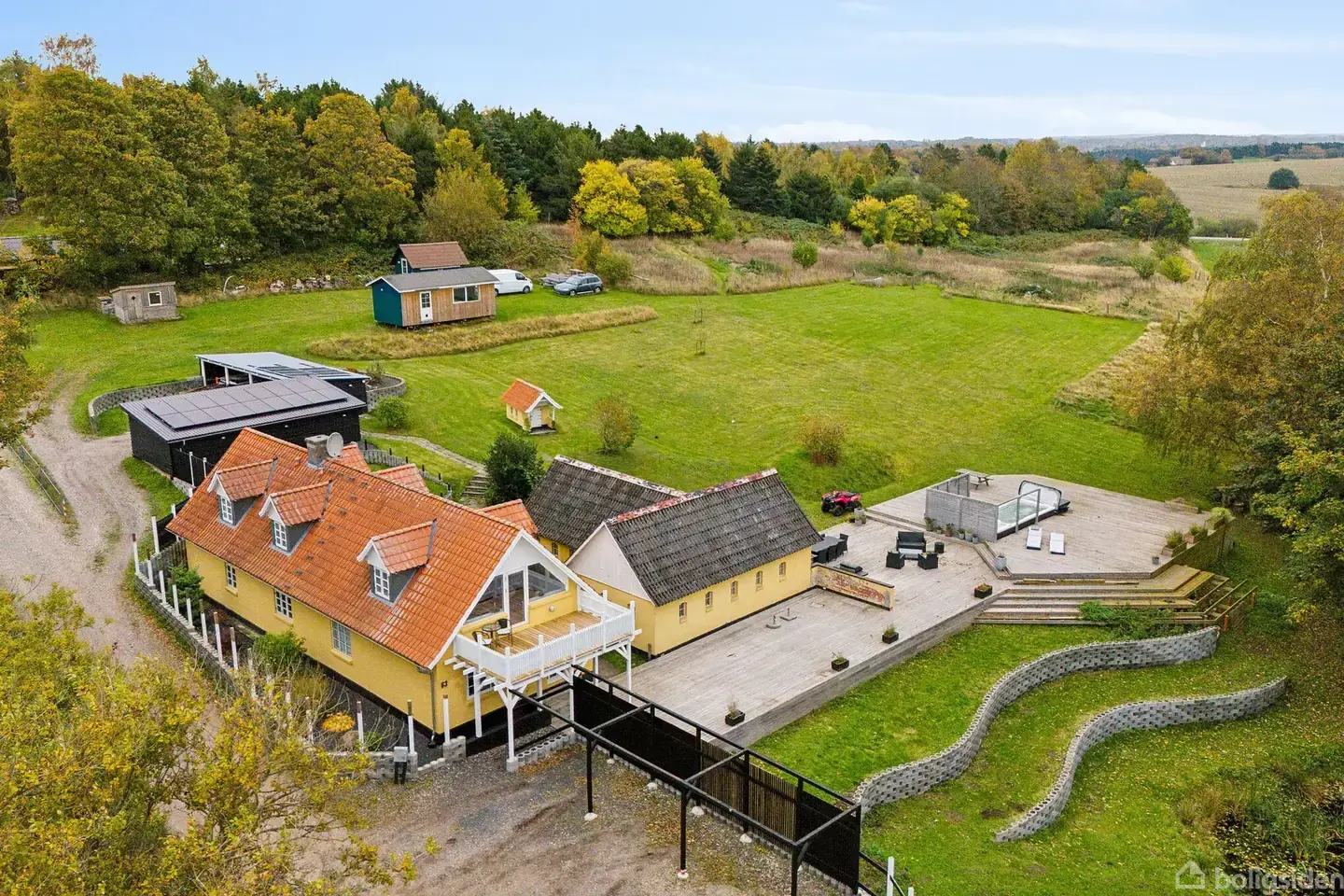 Nu kan I skrive jeres næste boligkapitel her på Toftevej 63, som giver jer fantastiske og ugenerede omgivelser til den kommende Søborg Sø og nationalparken. Huset ligger i Søborg nær Gilleleje, og her får I kort afstand til hverdagens bekvemmeligheder. Villaen byder på en gennemført planløsning med plads til familien. Der er ydermere et stort værksted og en 450 m2 træterrasse med spa og pool. Velkommen til. Grunden råder over en hektar, og med fuglefløjt og højt til himlen føles det befriende og dejligt. I kommer til at få udsigt til Søborg Sø, som snart genopstår, hvilket blot er én af husets store forcer. Kun halvanden kilometer væk ligger Søborg Privatskole, mens I også hurtigt kommer til den lokale institution. Derudover kan I køre fire kilometer til Esbønderup, hvor der er indkøb. Søborg Station er endvidere tre og en halv kilometer fra ejendommen. Indenfor venter et velholdt hjem, der de seneste 20 år er blevet løbende istandsat og vedligeholdt. I stueplan ligger et indbydende køkken, som smelter sammen med en spisestue på fineste vis (som kan ændres til et stort køkken/alrum). Bemærk de hvidmalede bjælker i loftet, der virkelig understreger den hyggelige atmosfære. Derudover er der tre værelser på etagen samt et badeværelse. Gulvene på første sal er i 2024 slebet, og heroppe finder I et værelse samt dagligstuen og endnu et badeværelse. Fra stuen er der adgang til en balkon, hvorfra udsigten virkelig kommer til sin ret. Den anseelige terrasse er hele 450 m2 og bygget i flere niveauer. Der er endda spa og pool, hvilket blot er opskriften til den perfekte sommerfest. I carporten er der plads til mange parkerede biler, og gør-det-selv-entusiaster vil elske det isolerede værksted med solpaneler på taget fra 2024. Skal I bo lige her? Vi vil med glæde vise jer rundt.