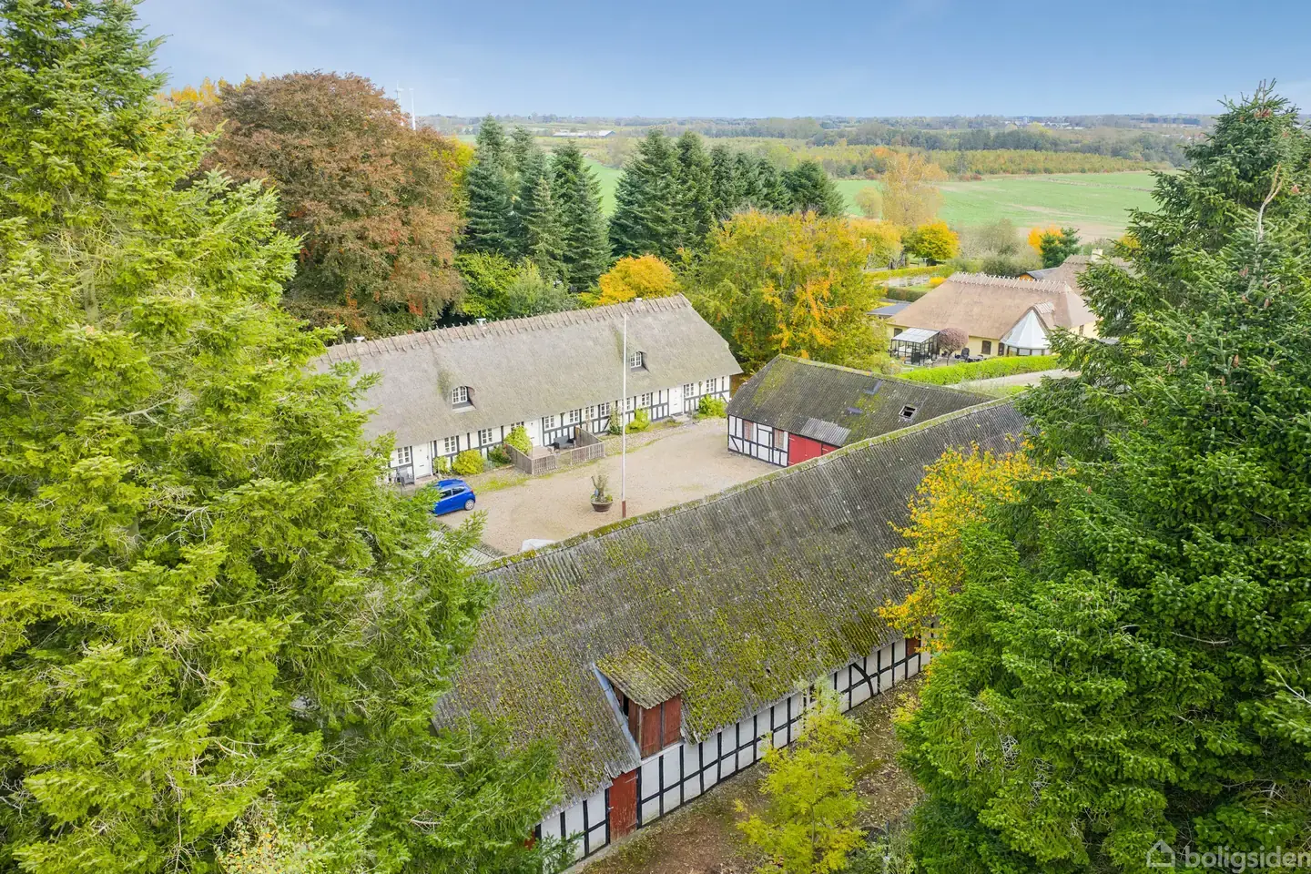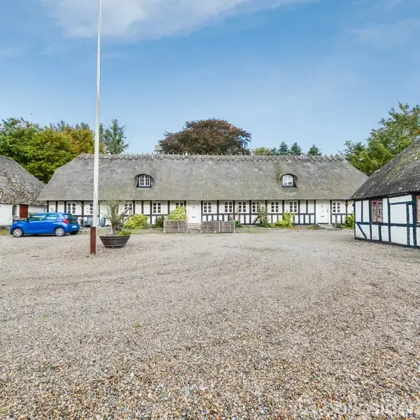 Idyllisk bindingsværksejendom med tre lejligheder i Brylle