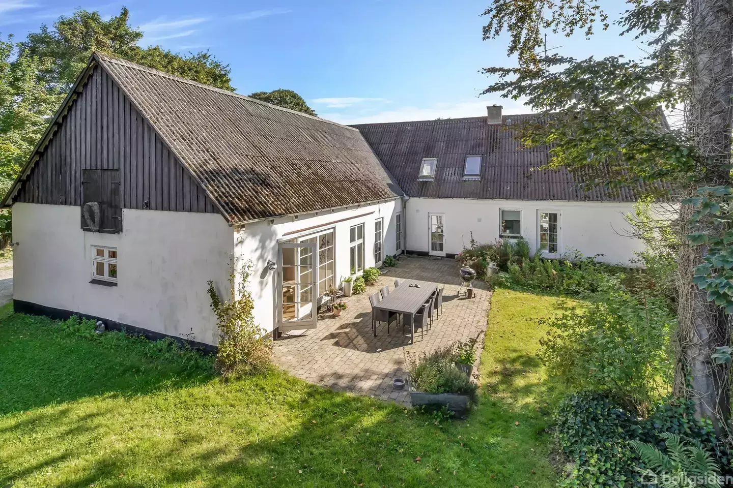 Charmerende landejendom til to familier i naturskønne omgivelser. Denne fine ejendom er opdelt i to rummelige boliger, der tilsammen udgør et samlet areal på 300 m². Hver bolig er indrettet med fokus på lys, rummelighed og funktionalitet, hvilket gør dem ideelle for både par, familier eller den store sammenbragte familie, muligheder er mange. Bolig 1a: Den første bolig byder på 120 m² fordelt over to etager. Ved indgangen finder man et praktisk bryggers, der har rigelig plads til opbevaring samt