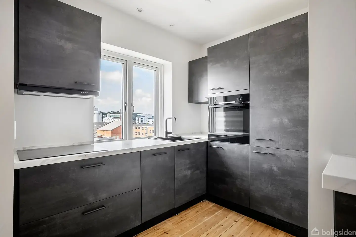 Åbent hus med tilmeldingskrav 7/2 - klik på billede - EDC Åløkken byder velkommen indenfor på Tolderlundsvej 80, 3. tv i Skibhuskvarteret, hvor du finder denne flotte og løbende renoverede lejlighed beliggende øverst oppe på 3. sal. Her får du en indflytningsklar lejlighed i en sund og veldrevet ejerforening med styr på både drift og økonomi. Beliggenheden er nær Odense Havn og Skibhuskvarteret. En lidt tilbagetrukket beliggenhed, men i en afstand, så man stadigvæk er en del af udviklingen og livet. Odense Havn har gennemgået en rivende udvikling som byens nye bo-kvarter og rekreative område. Her er både restauranter, havnebad, basketbaner, minigolf, fodboldfabrik, vandcykler og andre aktiviteter. Her afholdes markeder og andre aktiviteter. Derudover får man med Storms Pakhus og uddannelsesinstitutionerne et fantastisk og aktivt liv nær Havnen og med Byens Bro kan man nå gågaderne i City på få minutter. Der er fra Havnen gode transportmuligheder til Syddansk Universitet og til naturelskeren er Næsbyhovedskoven lige rundt om hjørnet. Lejligheden byder velkommen i en lille entré med plads til sko og overtøj. Herfra træder du ind i et moderne og åbent køkken-alrum med stilfuldt køkken i mørke nuancer, god skabsplads og alle nødvendige hårde hvidevarer. Rummet har en naturlig opdeling mellem køkken og ophold og skaber en god base for både hverdag og gæster. Stuen har et rustikt look med en flot new yorker-væg og giver plads til både sofaarrangement og spisebord. Soveværelset er rummeligt og indrettet med plads til både seng og skrivebord – perfekt til både par eller singlen, der ønsker et hjemmekontor. Badeværelset er moderne med store lyse klinker, separat bruseniche og toilet. Alt i alt en skarp og velholdt lejlighed med en god planløsning og stilrene detaljer Vi fremviser alle ugens dage!