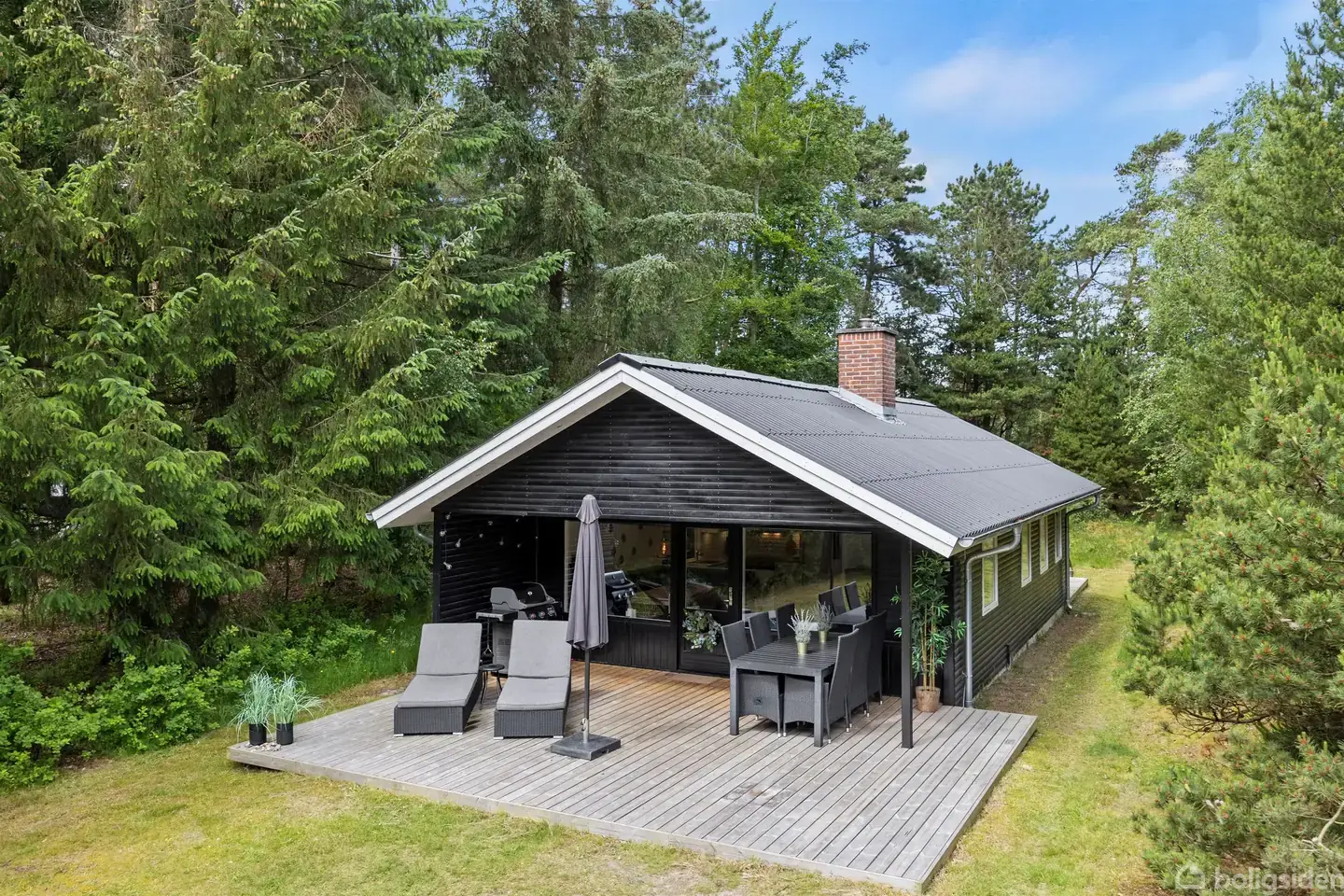 I det idylliske og naturskønne Ho finder du dette nydelige og gennemgribende moderniserede sommerhus, som fremstår indbydende, stilrent og helt klar til at blive taget i brug. Her får du et sommerhus, hvor alt det tunge arbejde allerede er gjort, og hvor kvalitet, komfort og stemning går op i en højere enhed. Beliggenheden er helt perfekt - tæt på Ho Bugts rolige vande, de smukke skov- og naturområder, Skallingens store fredede klitarealer og det levende ferieområde i Blåvand. Sommerhuset er oprindeligt opført i 1970, men de seneste år forvandlet fra A til Z. Blandt de mange forbedringer kan nævnes køkken og badeværelse fra 2022, indvendige døre, gulve og lister samt maling både ude og inde samme år. I 2022 fik huset nyt tag, efterisolering af loftet, nye stern og udhæng, zinktagrender samt stilfulde spots over det nyanlagte terrassemiljø. Indretningen og møbleringen er nøje udvalgt og fuldender det lette, moderne sommerhusudtryk. I 2024 blev hjemmet yderligere forbedret med et Dantherm ventilationsanlæg i alle rum, som sikrer et sundt og behageligt indeklima året rundt. Indretningen er gennemtænkt og lys. Fra entreen træder du ind i det flotte køkken-alrum, hvor der er god plads til madlavning og fælles måltider. Køkkenet ligger i åben forbindelse med den hyggelige stue, der er smagfuldt indrettet og skaber et naturligt leverum i huset. Herfra er der adgang til alle tre gode værelser, hvilket giver en praktisk og sammenhængende rumfordeling. Stuen har direkte udgang til den store terrasse, som nærmest forlænger boligen i sommerhalvåret. Den 2.532 m² store naturgrund giver en sjældent skøn følelse af fred, luft og privatliv. Her er varieret beplantning, gode lækroge og plads til leg og aktiviteter for hele familien. Huset opvarmes med el-gulvvarme på badeværelset og en energivenlig luft-til-luft varmepumpe, som kan fjernstyres. Sommerhuset er desuden velegnet til udlejning, og der foreligger udlejningsaftale med Esmark - forhør nærmere. Et virkelig skønt og gennemført sommerhus med beliggenhed og stand i topklasse.