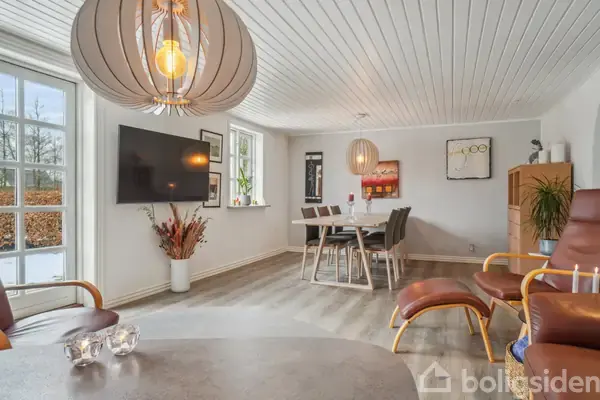 Søger I en velindrettet bolig i naturskønne omgivelser? Så skal I vende blikket mod denne landejendom i Tollestrup. Den er løbende renoveret, blandt andet med udskiftning af gulve i køkken og stue i 2020. Med sine 142 kvadratmeter fordelt på en grund på hele 12.291 kvadratmeter er der god mulighed for jer, der drømmer om mere plads og natur. Her får I også et integreret fyrrum og værksted med port samt udhus med stald og carport. Indenfor bydes I velkommen i et bryggers med afsætningsplads og