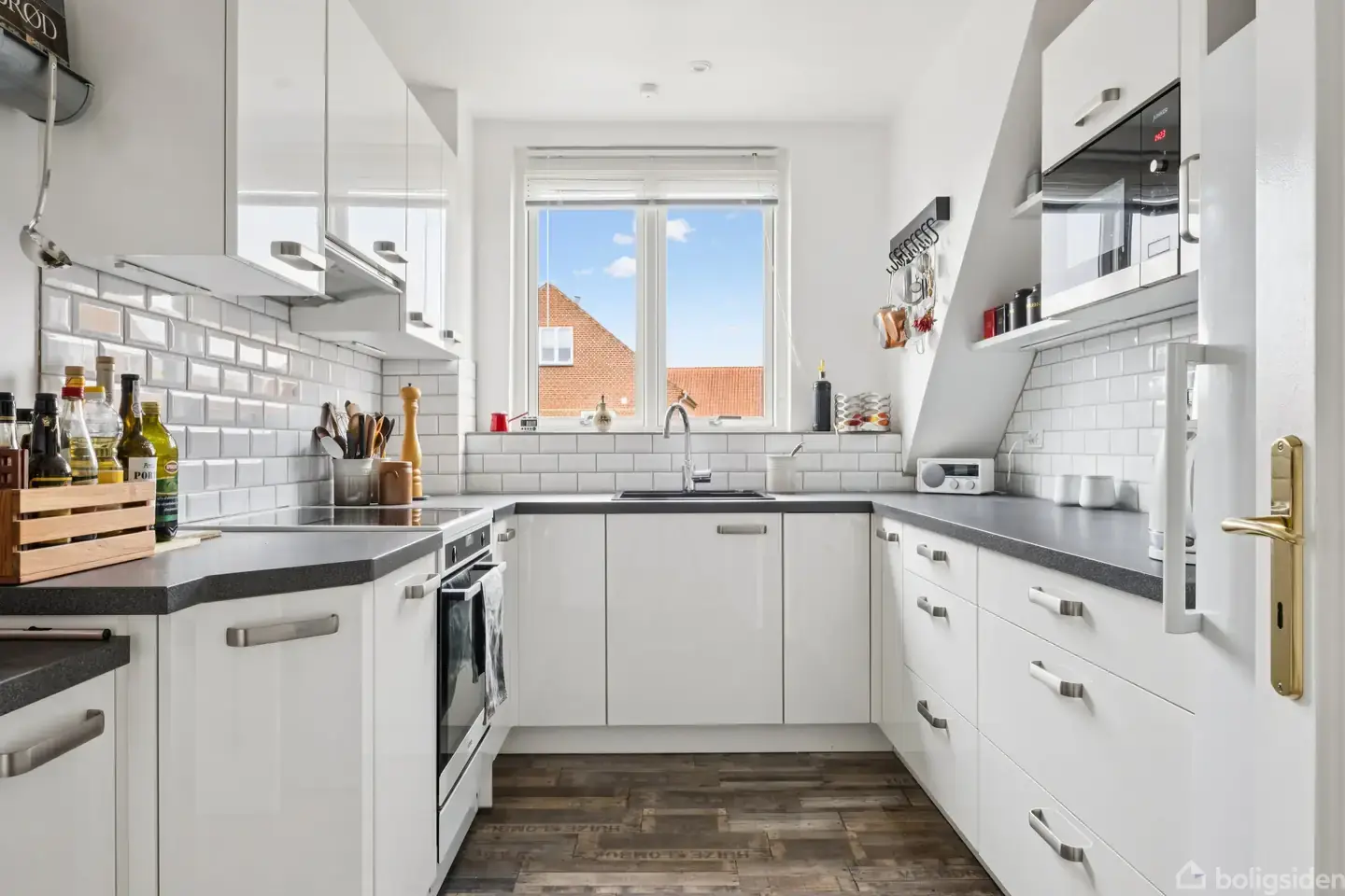 Midt i Køge centrum finder I denne charmerende ideelle anpart i en klassisk villa fra 1936 med egen have, garage og med brugsret til et stort disponibelt loftrum. Her får I en bolig, der kombinerer byliv, privatliv og funktionelle kvadratmeter på bedste vis.INDRETNING Boligen rummer 70 veldisponerede kvadratmeter, som fordeler sig praktisk og lyst på ejendommens første sal. Her møder I to gode værelser, der egner sig til både soveværelse, børneværelse eller hjemmekontor alt efter behov. Køkkenet