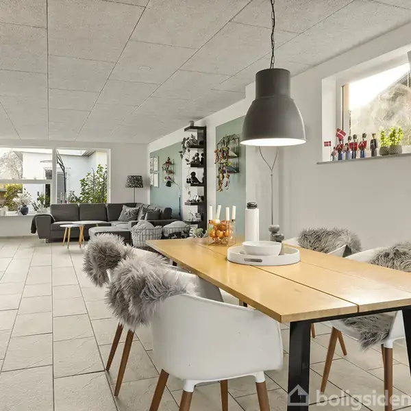 Den lyse villa balancerer det enkle med det indbydende og giver plads til at leve livet uden for mange kompromiser. Den åbne planløsning og de fire værelser gør boligen ideel for en familie, der ønsker rummelighed og praktiske rammer. Store vinduespartier, lyse materialer og rolige farver skaber en gennemgående lethed, der forstærkes af en sydvendt have med både terrasse, legehus og udestue.Det er tydeligt, at man siden ejendommens opførelse i 1961 har formået at opdatere med blik for at skabe e