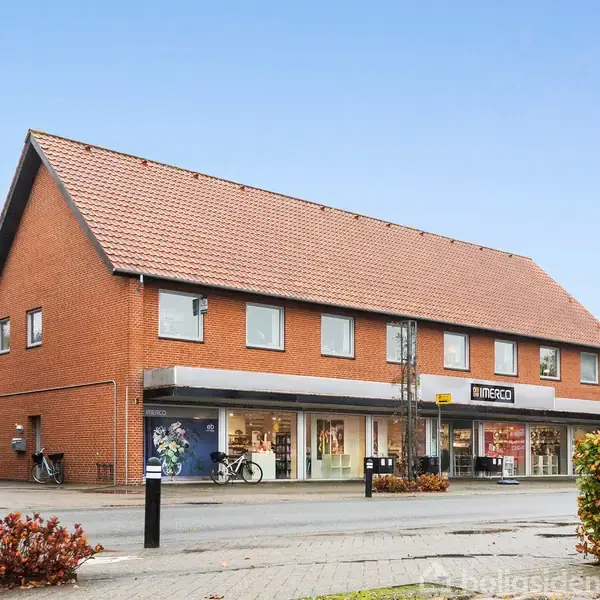 Åbent hus med tilmeldingskrav 3/2 - klik på billede - Herskabelig ejerlejlighed med tagterrasse, carport og udsigt til torvet i Ølgod Midt i hjertet af Ølgod finder du denne helt særlige ejerlejlighed – en bolig med en sjælden kombination af herskabelig stemning, rummelighed og central beliggenhed. Her får du hele 231 m² bolig med en stor, solrig tagterrasse, egen carport og udsigt til byens liv fra første parket. Lejligheden har sin helt egen karakter – allerede i den flotte indgang fornemmer man, at her er tale om noget ud over det sædvanlige. Det fine lysindfald og de store rum giver boligen en helt særlig ro og tilstedeværelse. Indretningen er gennemtænkt og fungerer perfekt til både familien og dem, der blot ønsker god plads omkring sig. I den ene ende af lejligheden finder du en separat børneafdeling med tre store værelser – hvoraf det ene har eget walk-in/depot, samt et badeværelse. Derudover findes et praktisk bryggers og et grovkøkken med ekstra opbevaring. Centralt i boligen ligger det store køkken med masser af bordplads og en naturlig spiseplads til hverdagens samvær. Herfra er der direkte adgang til tagterrassen, hvor du kan nyde solen og roen – en skøn oase midt i centrum. Stuen er rummelig og indretningsvenlig med plads til både spiseafdeling, sofahjørne og hygge. De store vinduespartier vender mod torvet og giver et dejligt kig ud over byens liv. I forældreafdelingen finder du et stort soveværelse med lang skabsvæg, et lille kontor eller påklædningsrum samt et stort badeværelse. Ejerlejligheden er en del af en veldrevet ejerforening med sund økonomi, og driftsudgifterne er meget lave – varmeforbruget udgjorde blot 7.200 kr. i 2024. Her får du kort sagt en lejlighed med sjæl, charme og uendelige muligheder, hvor du både kan mærke historien og skabe dit eget moderne hjem. En bolig, der skal opleves – vi glæder os til at vise dig ejerlejligheden.