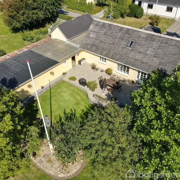 Åbent hus med tilmeldingskrav 5/2 - klik på billede - Her er der god mulighed for at flytte familielivet ud under åben himmel om sommeren. Den 1419 kvadratmeter store grund er hyggelig med brændeskur, drivhus, stor græsplæne med plads til leg og den store solrige terrasse, hvor solen kan nydes hele dagen. Boligen er beliggende i Godthåb, som er et hyggeligt bysamfund med skole, børnehave og hvor børnene selv kan cykle trygt til og fra skole. Her er masser af muligheder for leg i naturskønne omgivelser, også selvom huset kun er beliggende et øjeblik fra Svenstrup og City Syd. Boligens 158 kvadratmeter fordeler sig på en entré med garderobeplads, badeværelse med gulvvarme og bruseniche. Et stort køkkenalrum i åben forbindelse med dejlig stor stue med klinkegulv, brændeovn og udgang til dejlig sydvendt terrasse. På førstesalen er der en fordelingsgang med indbygget skabe og kontorplads, et soveværelse og to fine værelser. Huset har en stor overdækning/carport i åben forbindelse med garage, hvor der er et isoleret skur. Fra overdækningen er der gang til endnu et skur og et stort isoleret udhus med vaskerum og stort værksted, hvor der over vaskerum og værksted er et stort loftrum med plads til opbevaring.