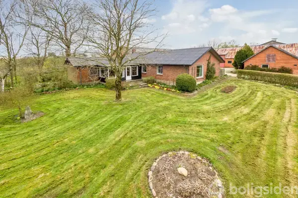 Ejendom i skønne omgivelser og omringet af åbner marker.Stuehuset er opført i 1981 og er på 206 m2. Dertil kommer et maskinhus på 486 m2, 2 ældre staldbygninger på henholdsvis 279 m2 og 91 m2 samt en gammel lade på 120 m2. Stuehuset er bygget i brune sten, trævinduer og eternittag.Huset er indrettet med entre, bryggers, badeværelse, soveværelse, samt 2 værelser. Derudover er der et spisekøkken, tv-stue samt stor dagligstue. Dertil kommer et gæstetoilet samt en udestue.Alt i alt en spændende ejen