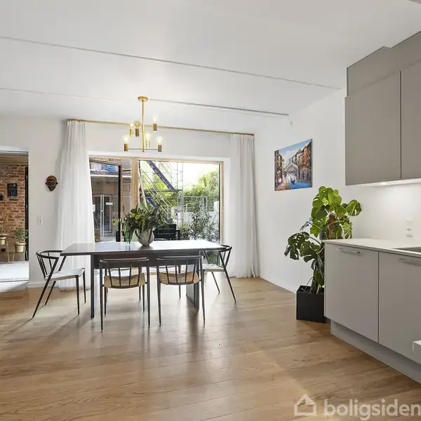 Denne fantastiske bolig er opført i 2025 og fremstår i særdeles god stand med en moderne og indbydende stil. Her får du 106 veludnyttede kvadratmeter fordelt på to plan, hvor de høje lofter og de store vinduespartier skaber en lys og luftig atmosfære, der gør rummene ekstra indbydende. I stueplan bydes du velkommen i en entré med god plads til garderobe, og her finder du også et praktisk gæstetoilet. Det centrale samlingspunkt er det store køkken-alrum og opholdsrum, hvor materialerne er holdt