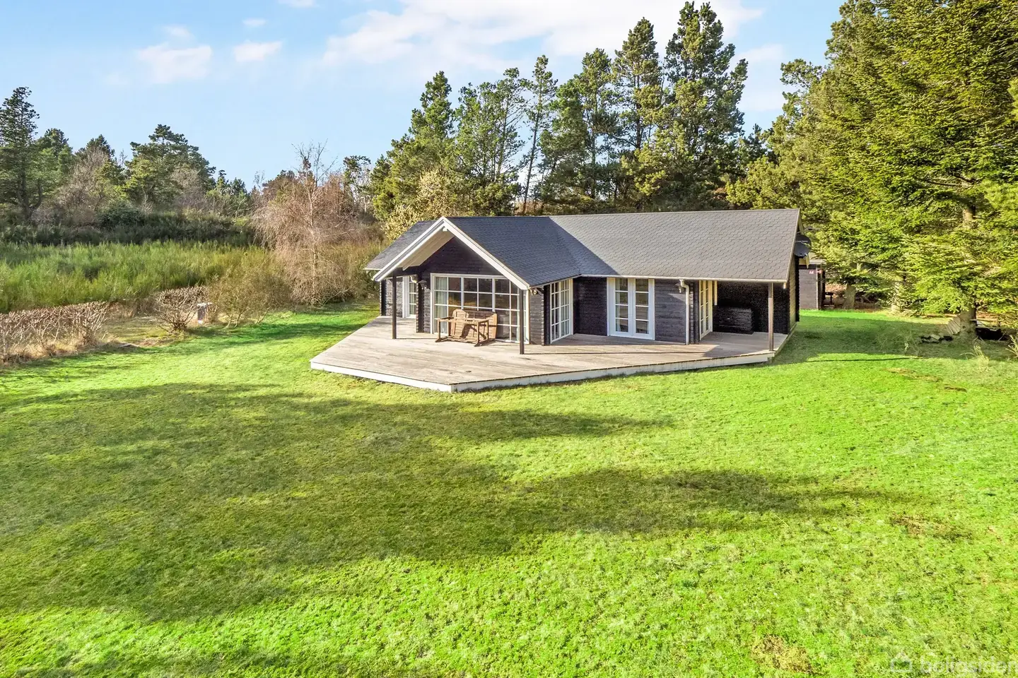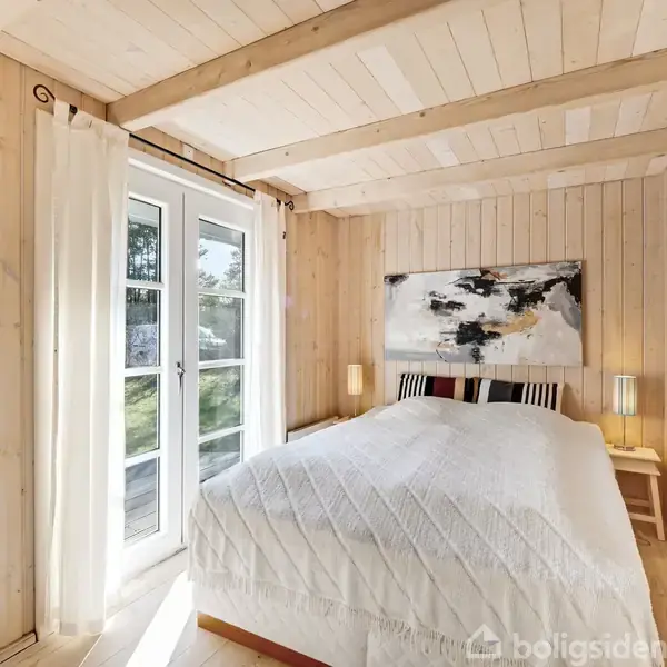 Flot sommerhus opført i 2005 som bjælkehus med vinduer og døre i plast. Huset er højt og fredeligt beliggende på skøn ugenert grund med flot natur i populært sommerhusområde tæt til Limfjorden med gode badeforhold.Huset er på 80 m2 og med store terrassepartier. Til huset hører endvidere godt "udhus" opført i samme materialer som sommerhuset.. Indvendig er huset med loft til kip, lofter og vægge er i ludet træ - indrettet med:Lækkert lyst badeværelse med lyse gulvklinker, bruseniche og skabsarran