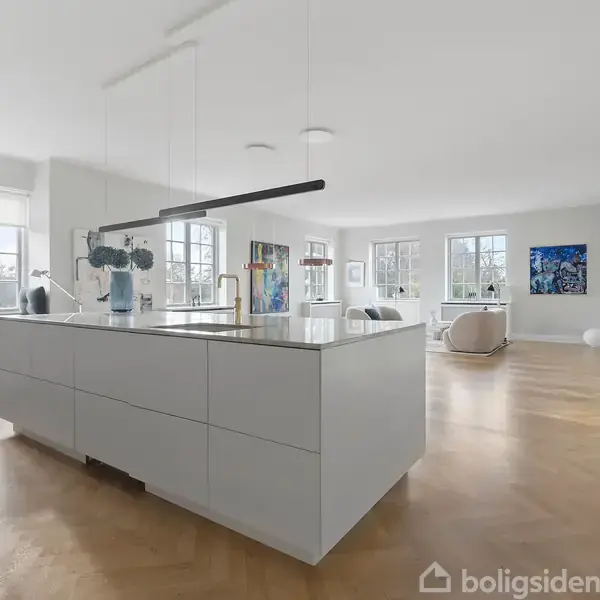Indbydende ejendom, opført i gule mursten, smukke vinduer og med den fineste opgang. At ejendommen har en bevaringsværdi på 3 er til at forstå. Her er både vejen, ejendommen, opgangen, udsigten og lejligheden en ren fryd for øjet. En drøm kan gå i opfyldelse for dig, der vægter æstetik, udsigt og beliggenhed højt.Når du træder ind i lejligheden har du den skønneste brede gang, som er den perfekte atelier gang. Forenden af gangen har du hjertet i lejligheden med det lækreste køkken alrum og stue i et med hele 5 høje og brede vinduespartier med udsigt i 1. parket til Øregårdsparken, smukke radiatorskjulere og sildebensparketgulv. Den smukke udsigt og ingen genboere er en luksus alle ugens dage. Sælger er ikke gået på kompromis med kvaliteten og har valgt et kvalitetskøkken fra Multiform med to ovne, quooker i messing og bordplader i Quartzite. Her er masser af skabsplads og øen er lavet med skuffer på bagsiden af øen. Selv om du har utrolig god skabsplads er der også et viktualierum, så du kan købe ind i større mængder, ligesom du måske "plejer" at gøre, fordi du bor i et hus - der er også plads til det store fryseskab eller et ekstra køleskab. I den ene brede vindueskarm har sælger fået lavet en tilpasset læderhynde og sat puder op af lysningen, så du kan sidde med en kop kaffe og en god bog og nyde udsigten. Der er god plads til det lange spisebord og den store sofagruppe. En suite til lejlighedens hjerte er der endnu en stue med to store vinduespartier. Master bedroom har adgang til lækkert flisebadeværelse med fliser, lagt i sildeben, møbelarrangement, stort spejl og vindue. I soveværelset er der lavet lækre indbyggede snedker skabe. Rummeligt værelse med indbyggede skabe.Bryggers er en luksus i en lejlighed og noget de fleste husejere savner, hvis de skal flytte i lejlighed. Men det har du her og endda med god skabsplads og en bruseniche. Der er også gæstetoilet, ligeledes med fliser på gulvet, lagt i sildebensmønster.Hvis du drømmer om din egen garage i gården, er der mulighed for at købe en.