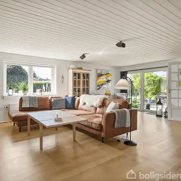 Tranevej 54 i Ikast byder velkommen til en skøn og velindrettet etplansvilla, som kombinerer moderne komfort med en rolig og attraktiv beliggenhed. Boligen ligger på en stille villavej i et trygt kvarter, hvor børnene kan færdes sikkert, og hvor der er kort afstand til skole, daginstitutioner, indkøb og grønne områder. Her får du en bolig, der er både funktionel, velholdt og fuld af naturligt lys.Villaen er opført i klassisk rødt murværk med et nyere tag i betontagsten, som giver et solidt og ve