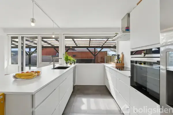 Renoveret villa med plads til familien i Sunds Denne flotte ejendom undergik en grundig istandsættelse i 2017, hvor det første fra denne opdatering, som I vil bemærke ved ankomst, er den fint anlagte indkørsel. Den fører videre til en flot terrasse, en garage på 27 kvm samt et solidt hus med gulvvarme flere steder, en gennemført stil og god plads til selv den store familie. Med hele 223 kvm boligareal er der rig plads, og det er enormt praktisk for både familiens egne behov, overnattende gæste