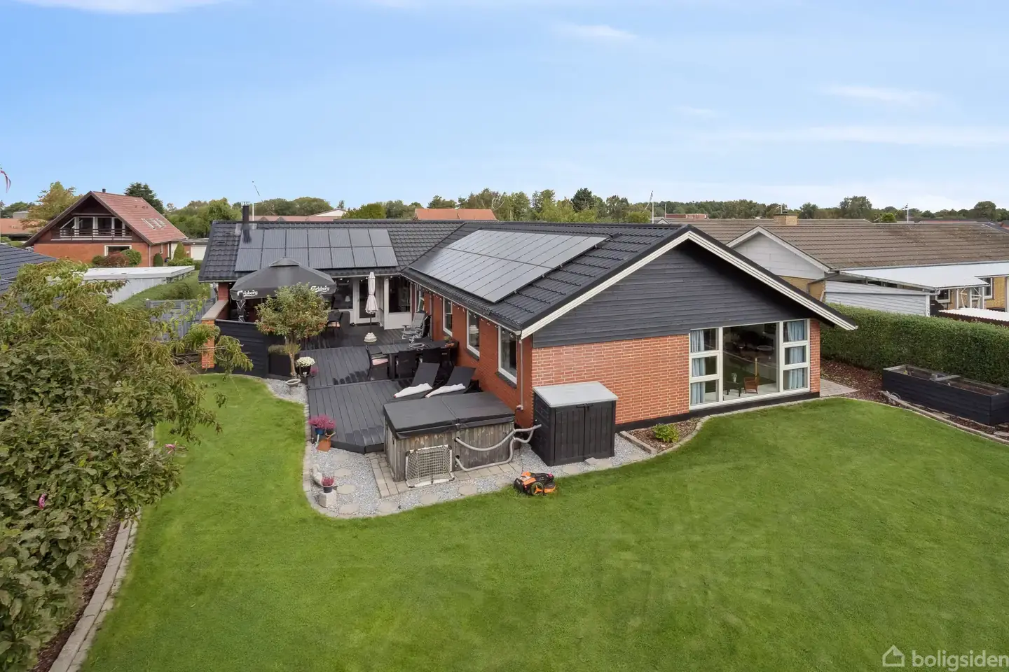 Indflytningsklar 1-plansvinkelvilla med moderne køkken/alrum og 2 dejlige badeværelser - centralt i Egtved. I et roligt og attraktivt villakvarter midt i Egtved finder I denne velindrettede og rummelige 1-plansvinkelvilla på 173 m2. Villaen fremstår indflytningsklar med løbende, moderne opdateringer - et oplagt valg for familien, der ønsker god plads, funktionelle løsninger og en nem hverdag tæt på byens faciliteter.Boligens naturlige samlingspunkt er det store, åbne køkken/alrum, som blev genne