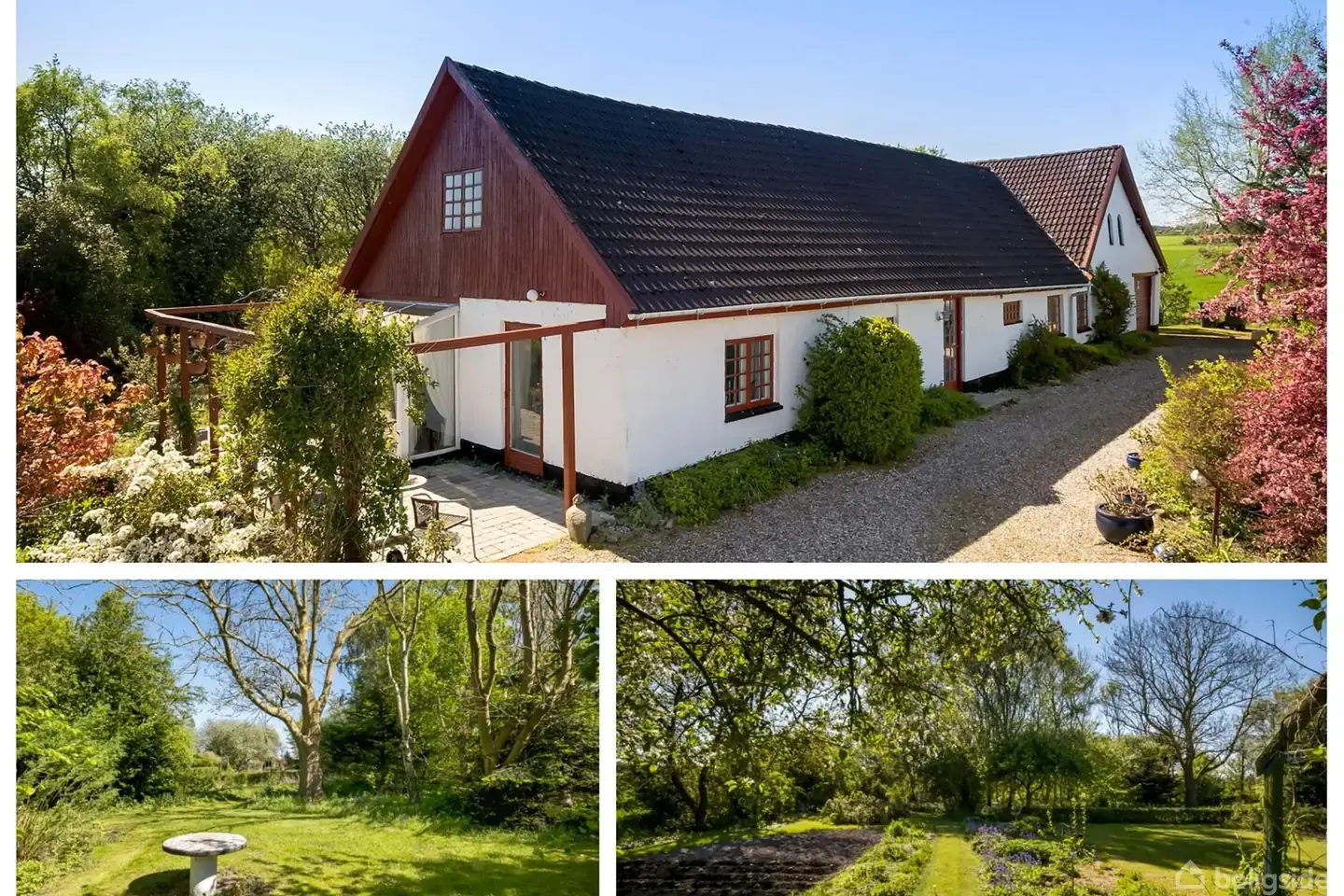 Velkommen til dette idylliske landsted, hvor charme og funktionalitet mødes i skøn harmoni. Ejendommen byder på en rummelig bolig og et vidunderligt haveanlæg, omgivet af åbne marker og rig mulighed for at nyde naturens ro og skønhed. Hovedhuset byder dig velkommen via en lys entré, der leder videre til en stor spisestue med direkte adgang til en solrig terrasse. Fra spisestuen er der forbindelse til endnu en stue, der oprindeligt er tænkt som havestue. Her kan du nyde den fantastiske udsigt over markerne gennem det store vinduesparti i gavlen. Stuen er udstyret med gulvvarme, som sikrer en behagelig atmosfære året rundt. Køkkenet ligger i åben forbindelse med et hyggeligt alrum, der fungerer som husets fordelingspunkt. Herfra er der adgang til et stort badeværelse med bruseniche og gulvvarme, to lyse værelser, et rummeligt soveværelse med indbyggede skabe, en praktisk baggang med udgang til terrassen samt et funktionelt strygerum. Til ejendommen hører også rummelige udhuse, der bl.a. rummer et grovkøkken, flere disponible rum, et rum med varmepumpe samt en stor lade, som også fungerer som garage Udendørs finder du en imponerende terrasse med pergola, der inviterer til afslapning og hyggelige stunder. Det gennemførte haveanlæg er en drøm for haveelskere og rummer alt fra en lille sø og snoede stier til farverige blomsterbede, drivhuse og en køkkenhave. Her er også et lille skovstykke samt et væld af frugttræer og bærbuske. Naturen spiller en central rolle på ejendommen, og det er ikke ualmindeligt at få besøg af rådyr, krondyr og et væld af fugle, som bringer liv og glæde til omgivelserne. Dette landsted er det perfekte valg for dig, der drømmer om en bolig med plads, charme og naturskøn beliggenhed. Her er både ro, sjæl og muligheder for at skabe dit eget drømmehjem.
