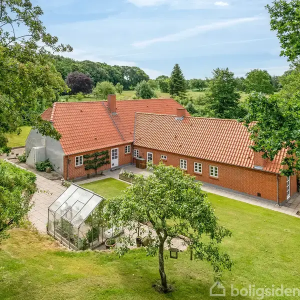 Smuk moderniseret landejendom med sjæl og rolig beliggenhed i det åbne landskab. Allerede ved ankomsten ad den stille grusvej fornemmer man den særlige ro, som stedet emmer af. Den velbevarede hovedbygning står med sine røde mure og det klassiske tegltag som et solidt vidnesbyrd om både historie og vedligeholdelse. Boligarealet strækker sig over 214 m² og fremstår i særdeles flot stand, en bolig hvor både detaljer og helhed er prioriteret højt. Ejendommen blev opført i 1930 og gennemgik en st